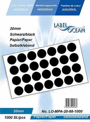 1000 Markierungspunkte, 20mm, Papier, schwarz von LabelOcean