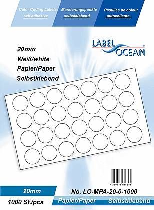 1000 Markierungspunkte, 20mm, Papier, weiß von LabelOcean