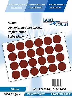 1000 Markierungspunkte, 30 mm, Papier, dunkelbraun von LabelOcean