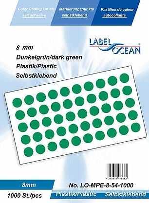 1000 Markierungspunkte, 8mm, Plastik, dunkelgrün von LabelOcean