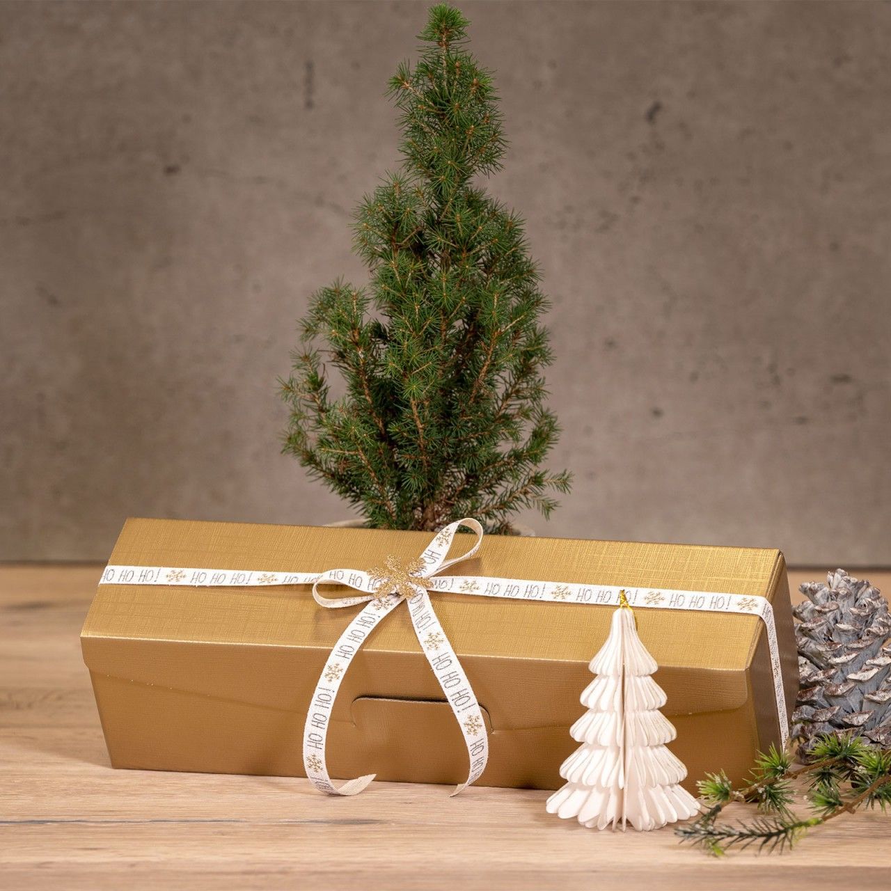 1000 x Präsentkarton für 1 Flasche 380x95x90 mm strukturgeprägt Gold