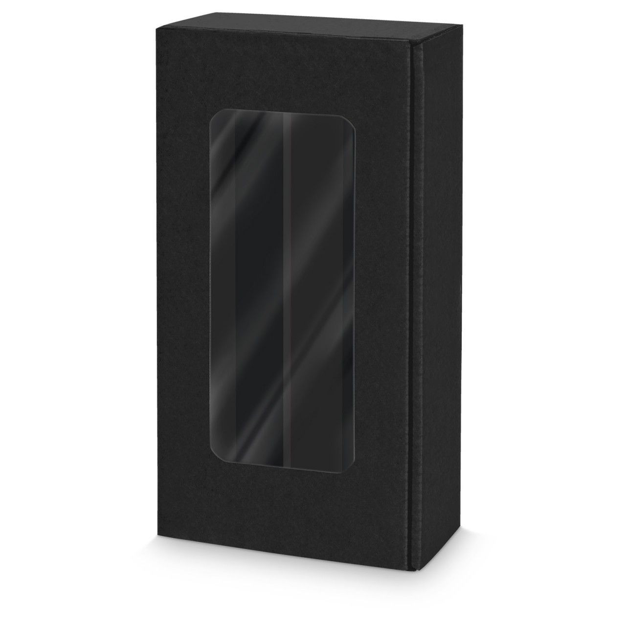 1000 x Präsentkarton für 2 Flaschen 360x180x90 mm Kraftpapier Fenster Schwarz