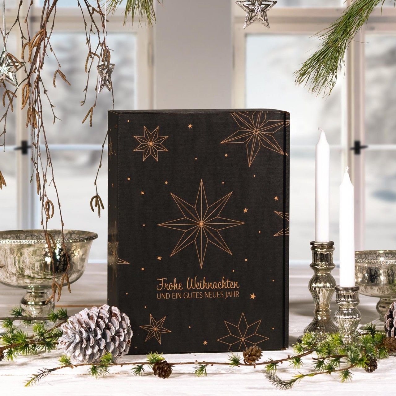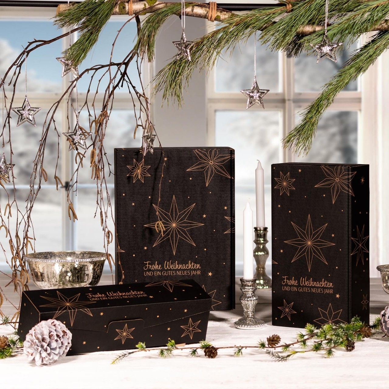 1000 x Präsentkarton für 3 Flaschen 360x250x90 mm Kraftpapier Weihnachten Schwarz