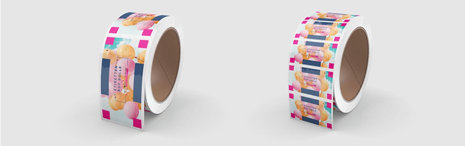 10000 bedruckte Etiketten auf Rolle indoor 60 u Haftfolie, weiß glänzend 4 x 3 cm