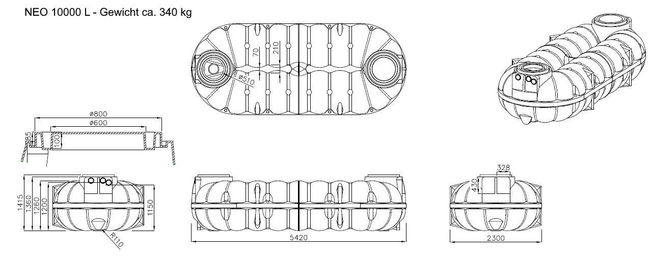 10000 Liter NEO Flachtank Regenwassertank Zisterne Erdtank Regenwasserzisterne