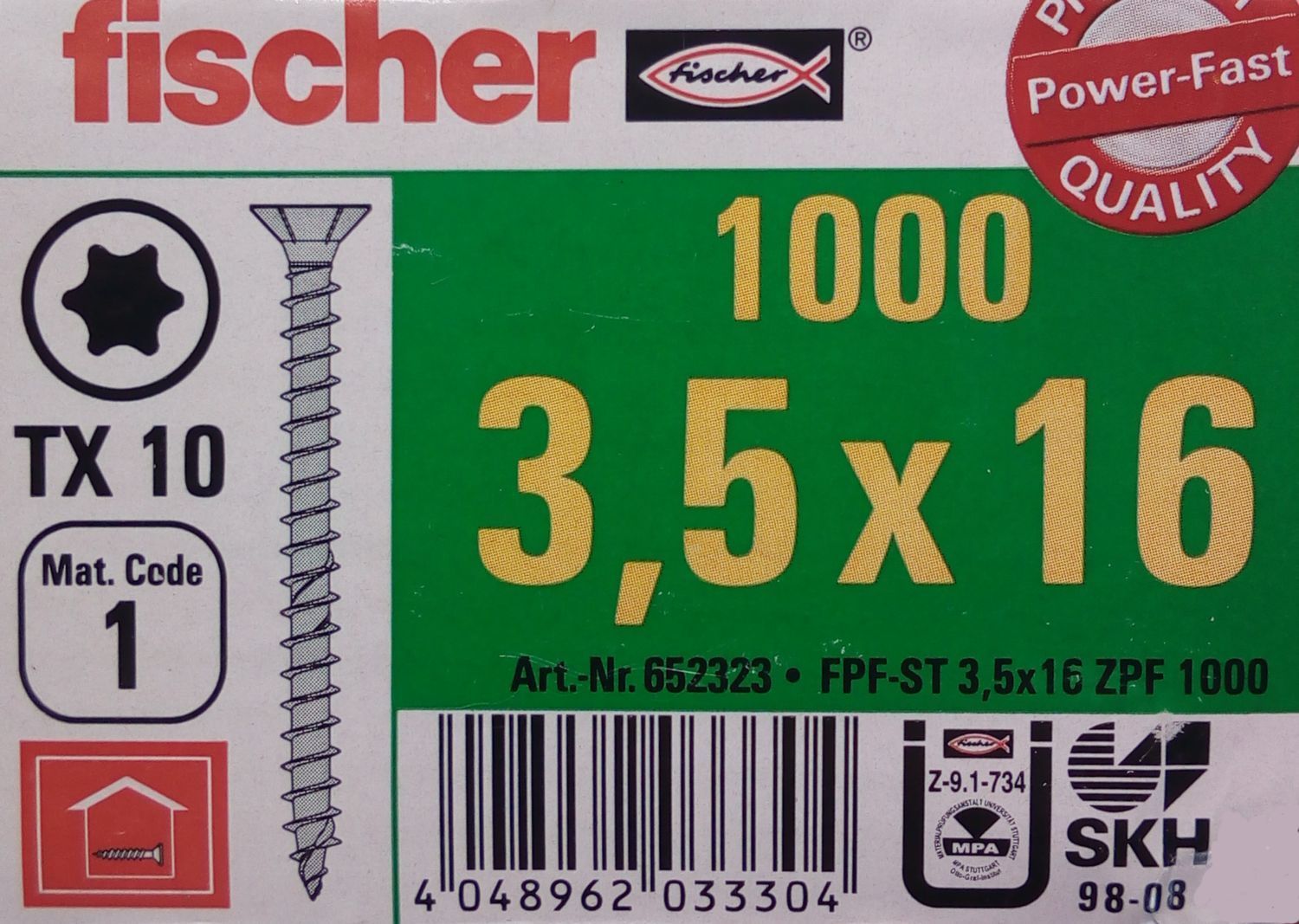 1000x fischer Spanplattenschraube 3,5x16 TX10 Holzschrauben verzinkt Vollgewinde