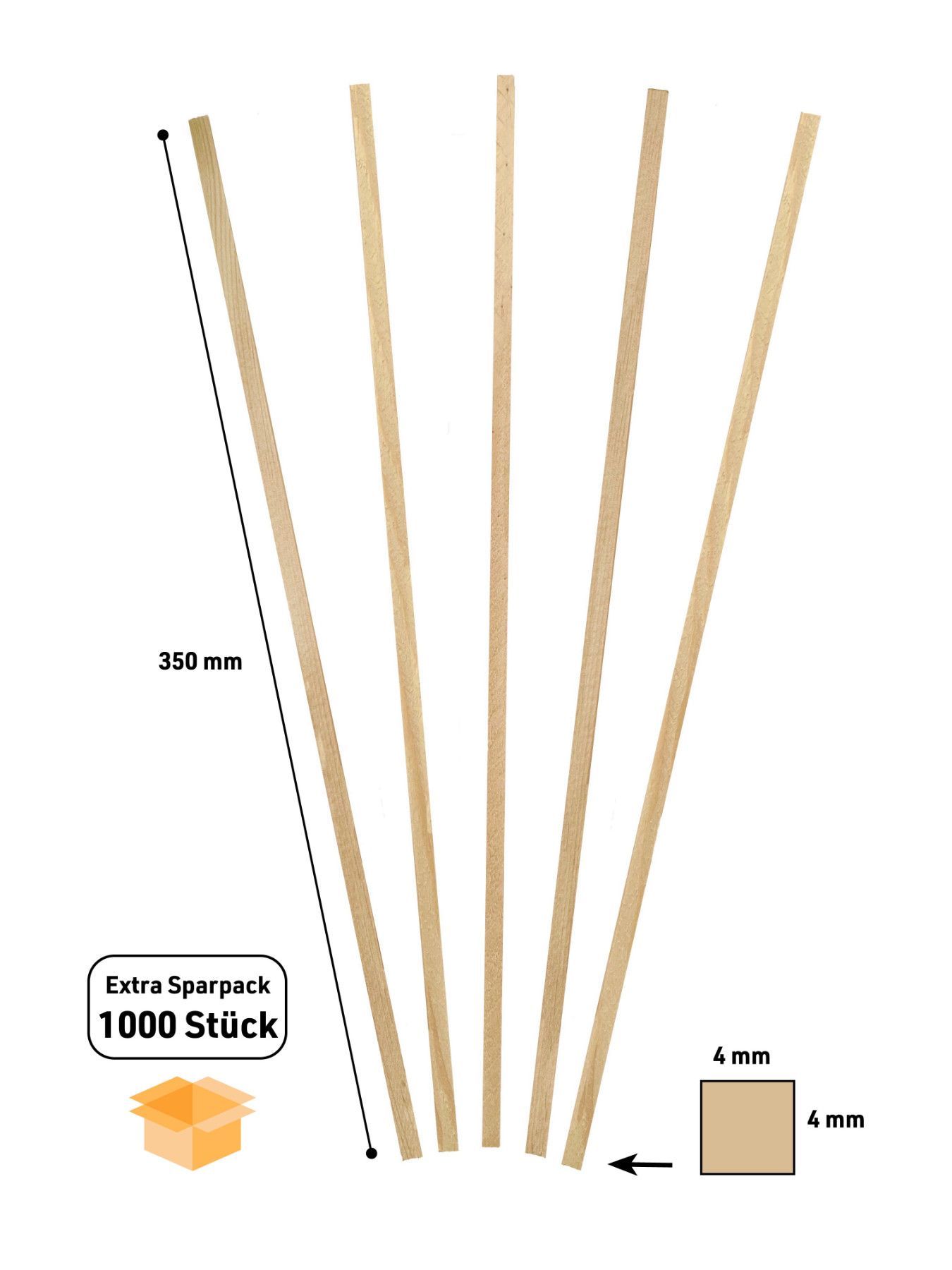 1000x Holzstäbchen vierkant 350x4x4 mm Zuckerwattestäbe Zuckerwatte Bombon Stäbchen