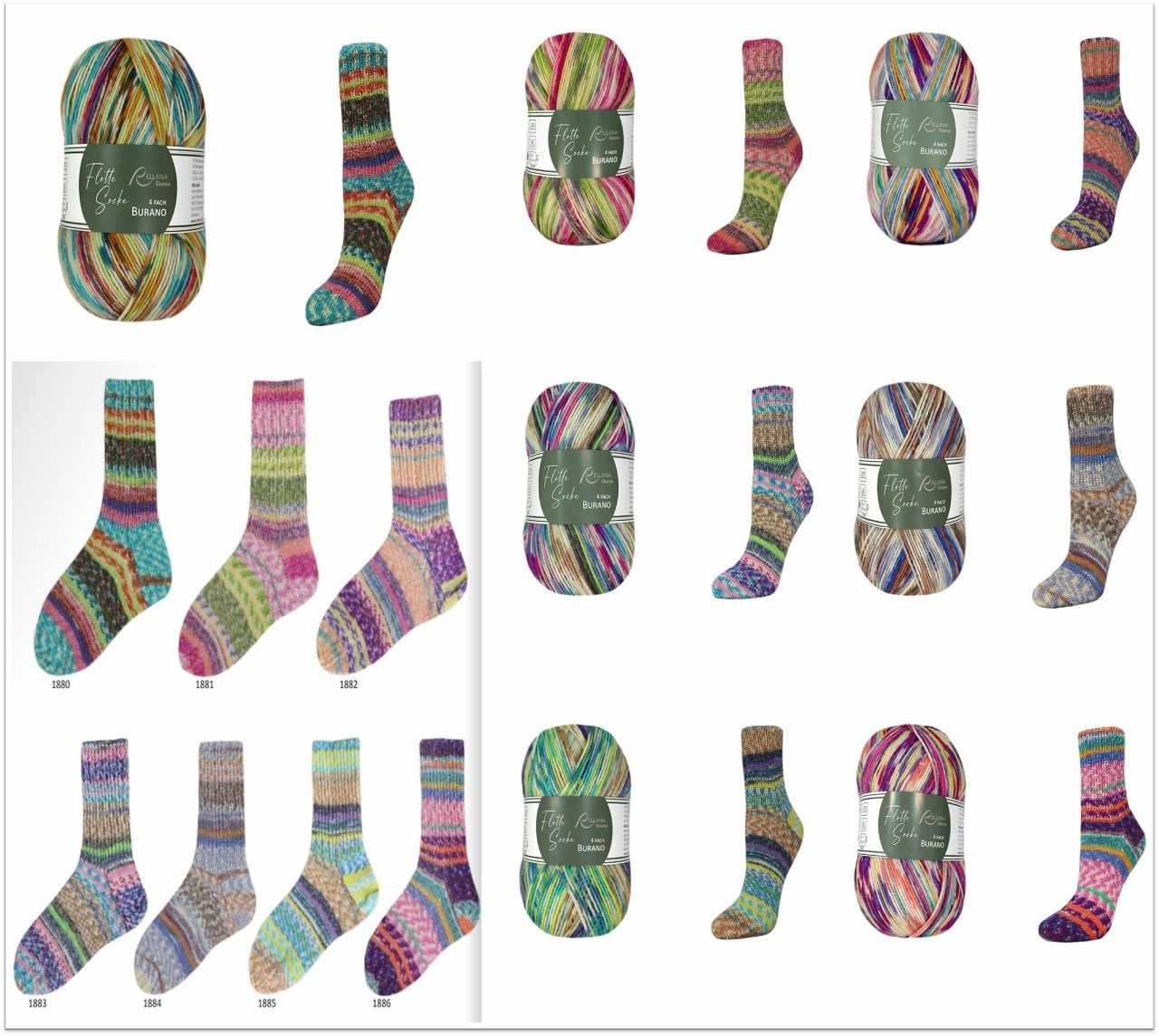 100g Flotte Socke Burano 4-fach Sockenwolle Strumpfgarn stricken GP 79,50€/1kg