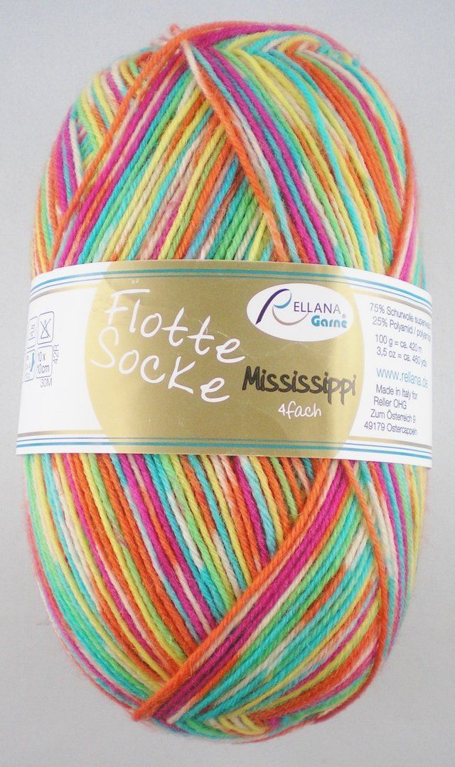 100g Flotte Socke Mississippi Sockengarn Strumpfwolle 4-fach GP 64,90€/1kg