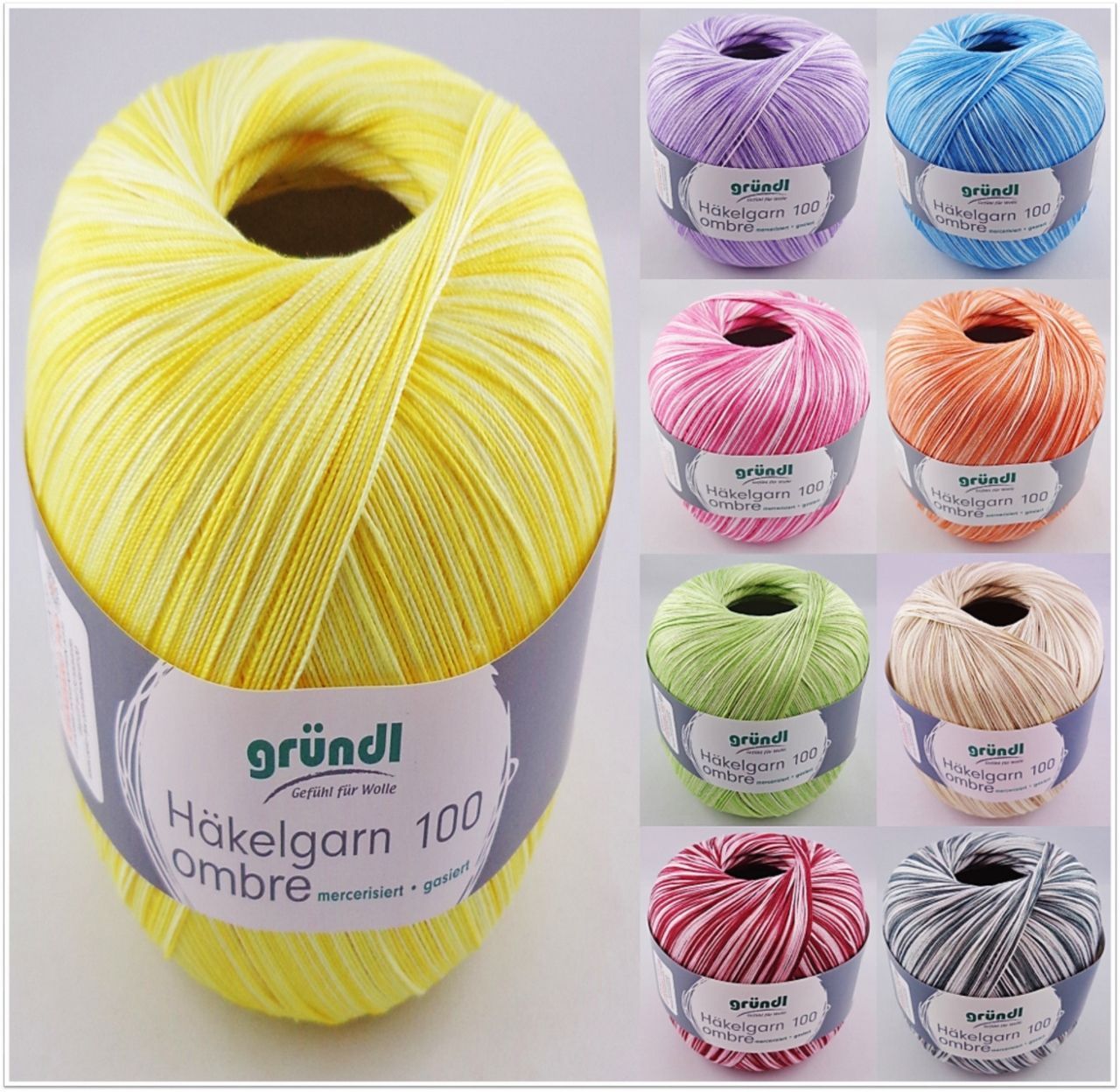 100g Gründl Häkelgarn 100 Ombré Filethäkelgarn Baumwolle Häkeln GP 54,90€/1kg