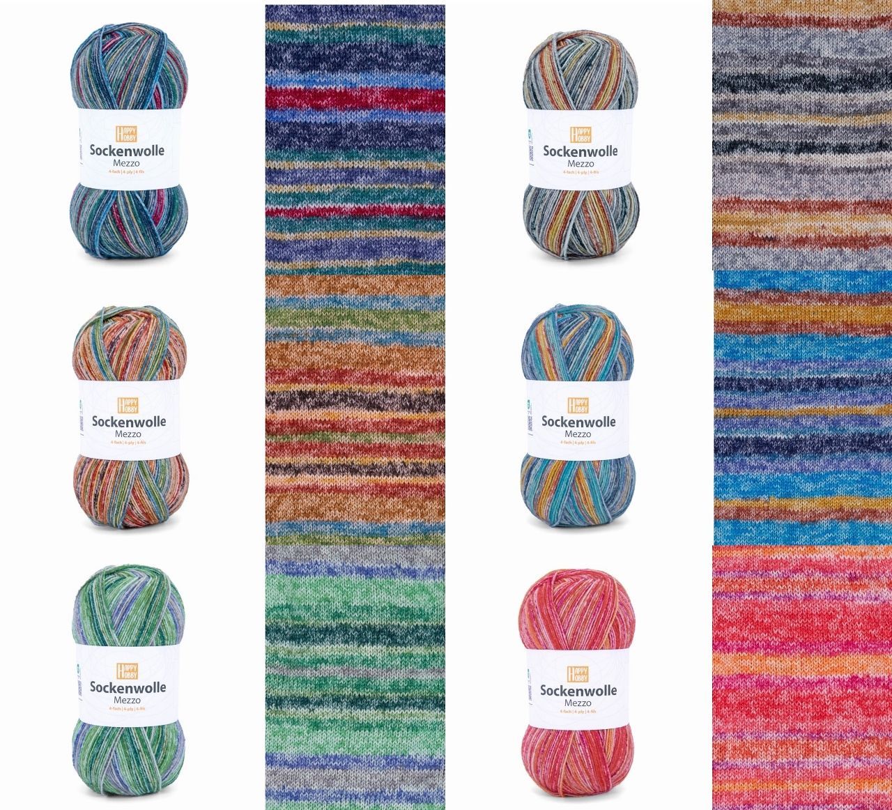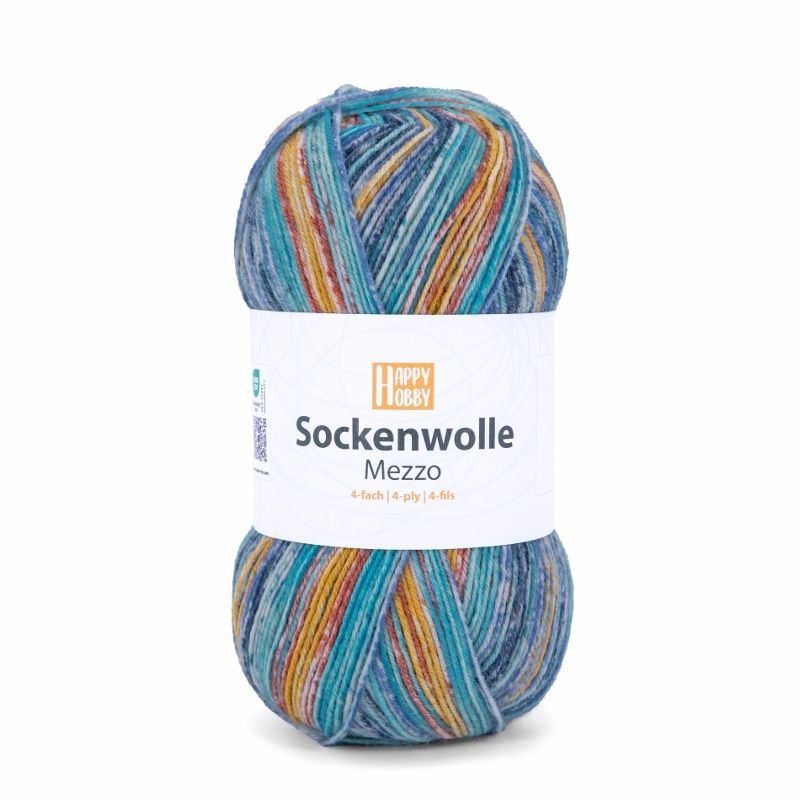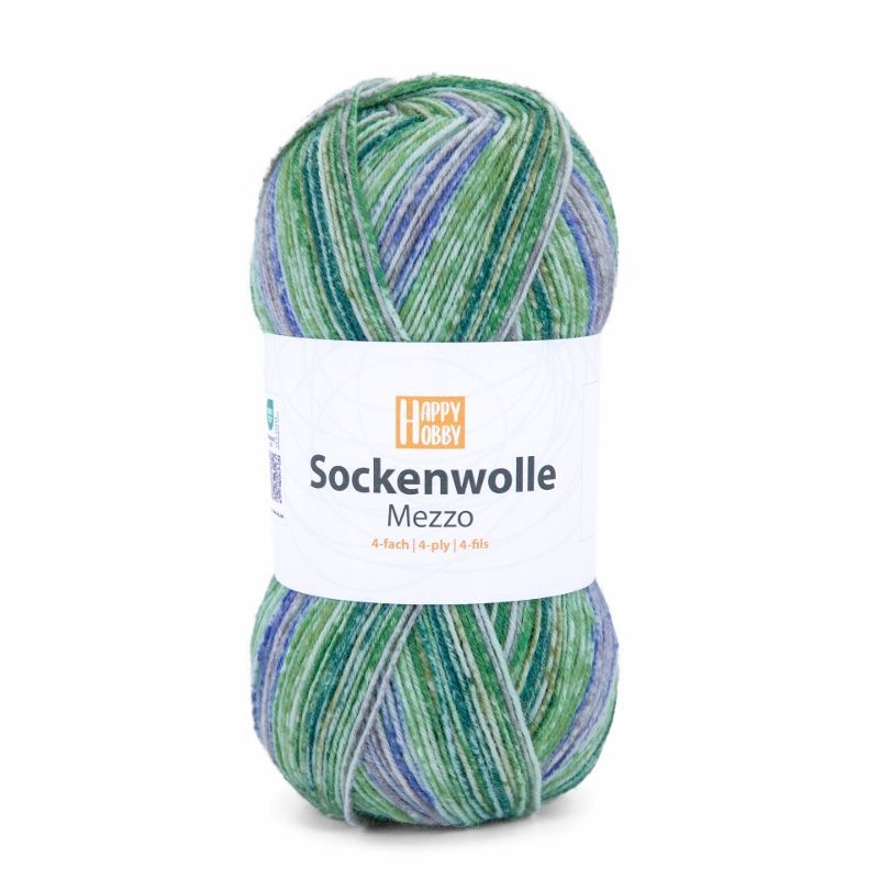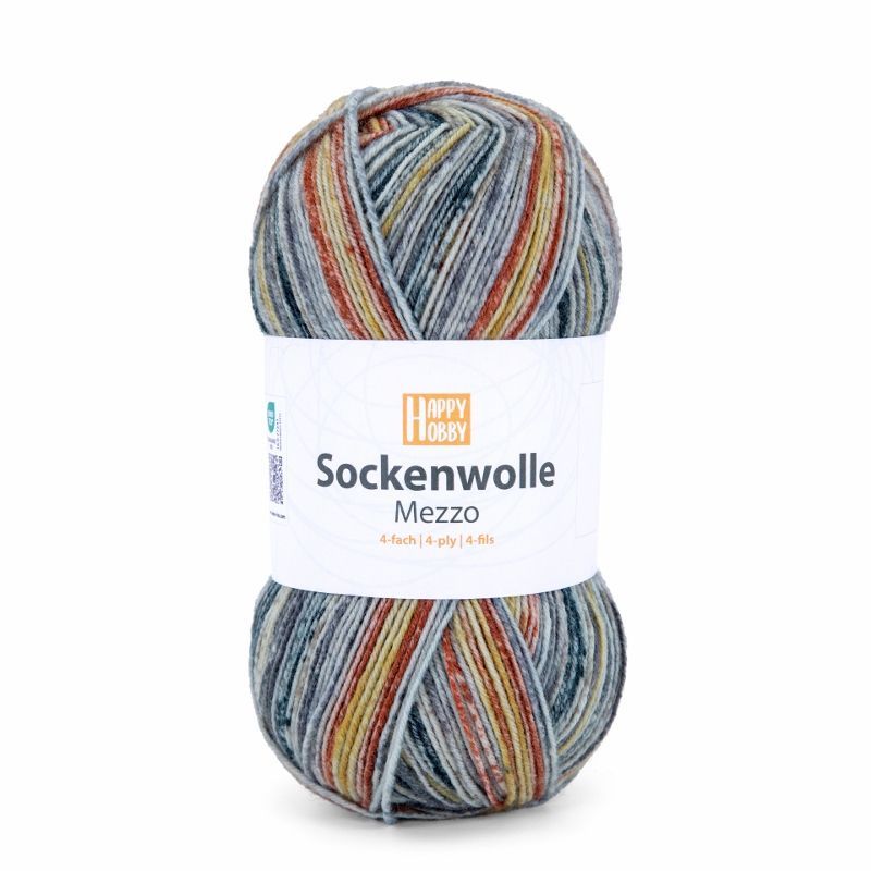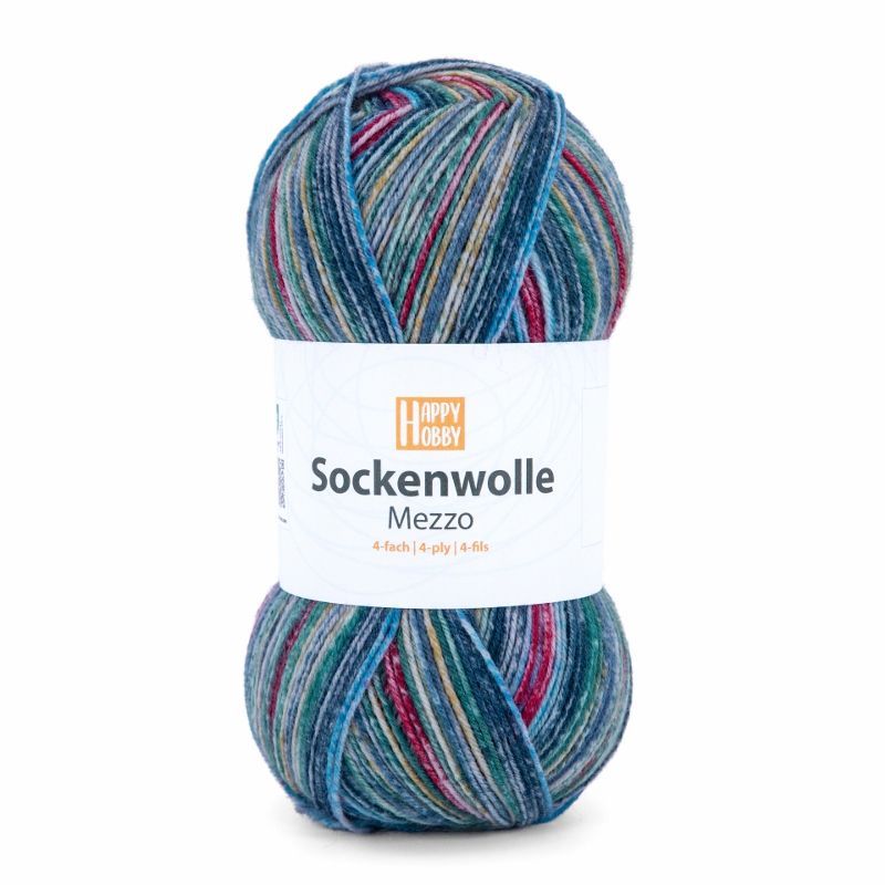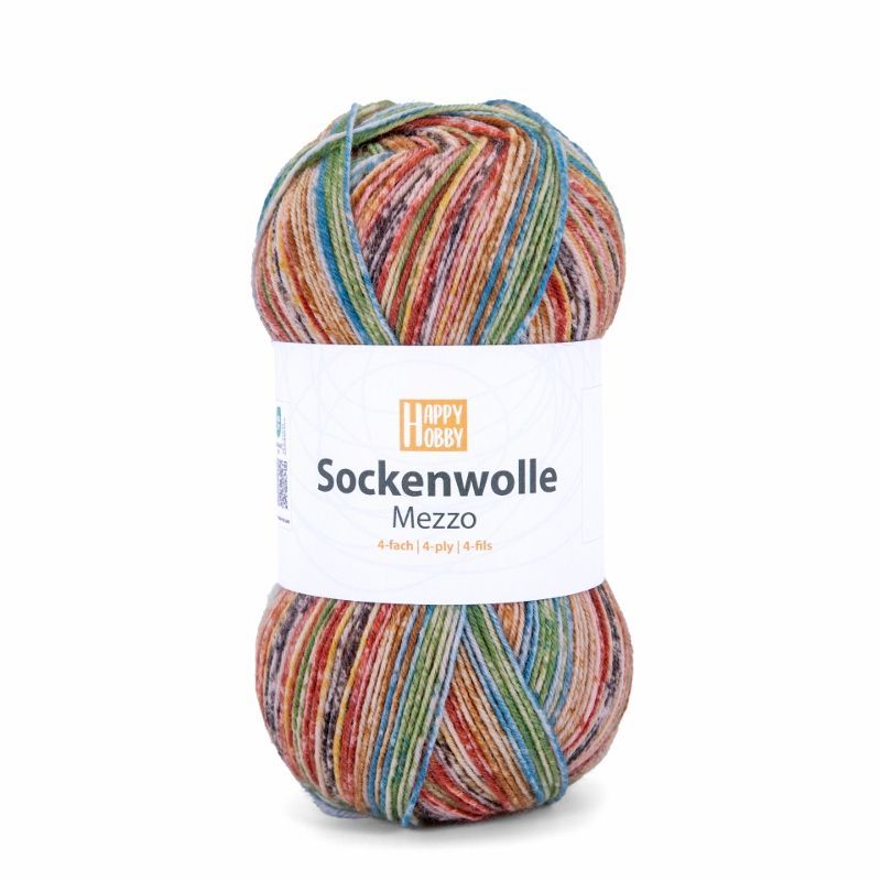 100g Happy Hobby Sockenwolle Mezzo 4-fach Garn zum Stricken Häkeln GP 54,90€/1kg