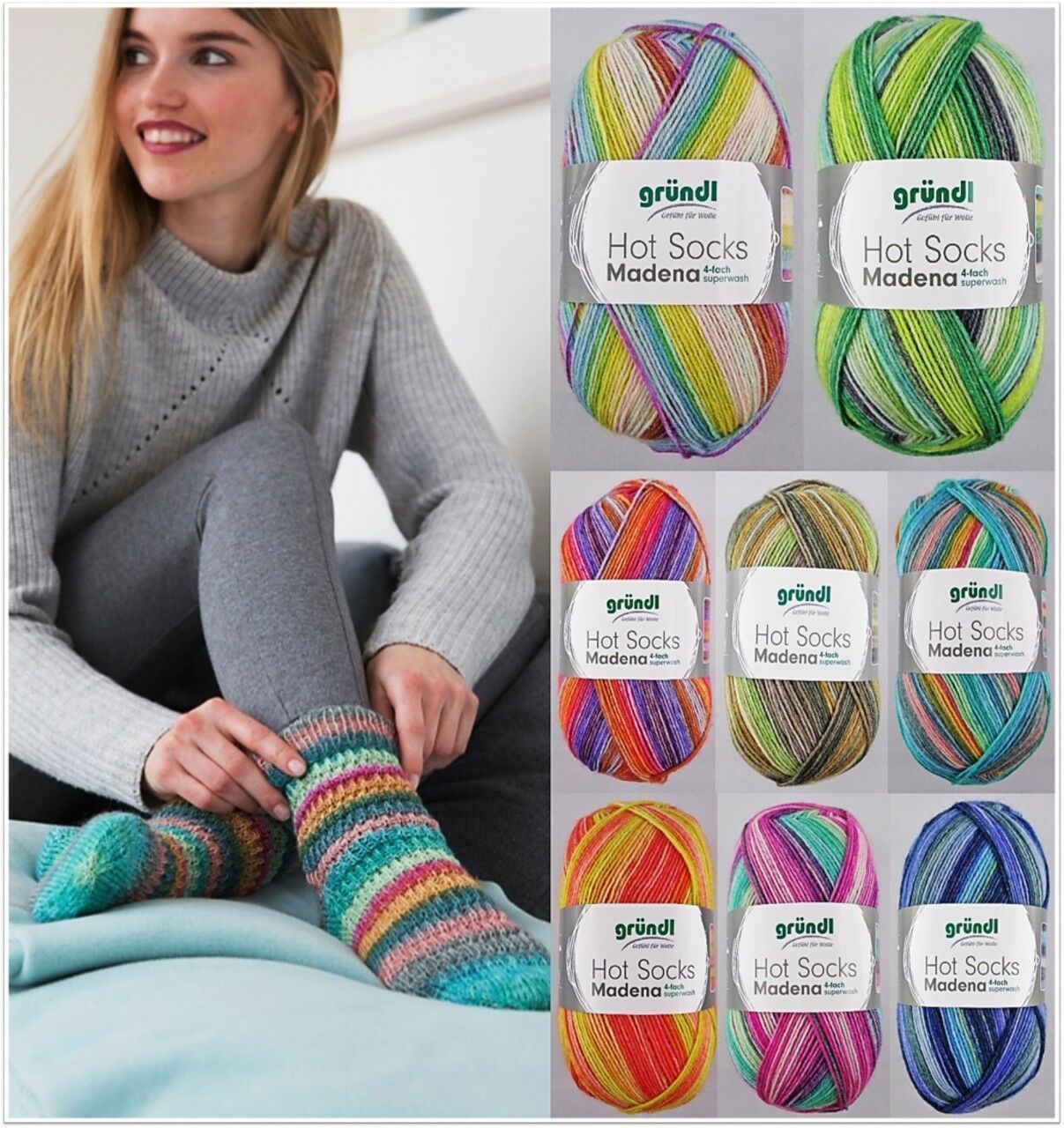 100g Hot Socks Madena 4-fach superwash Sockenwolle stricken häkeln GP 69,90€/1kg