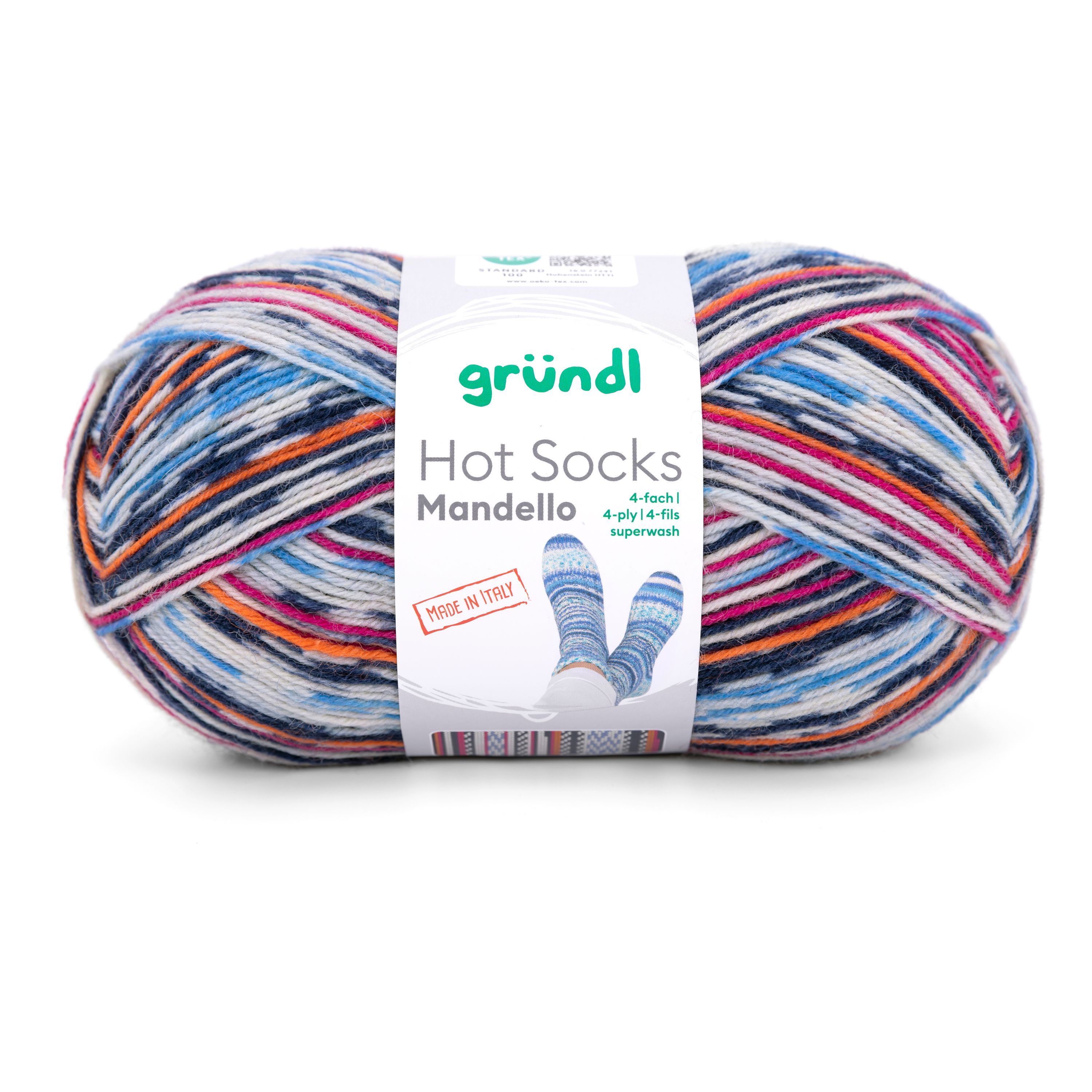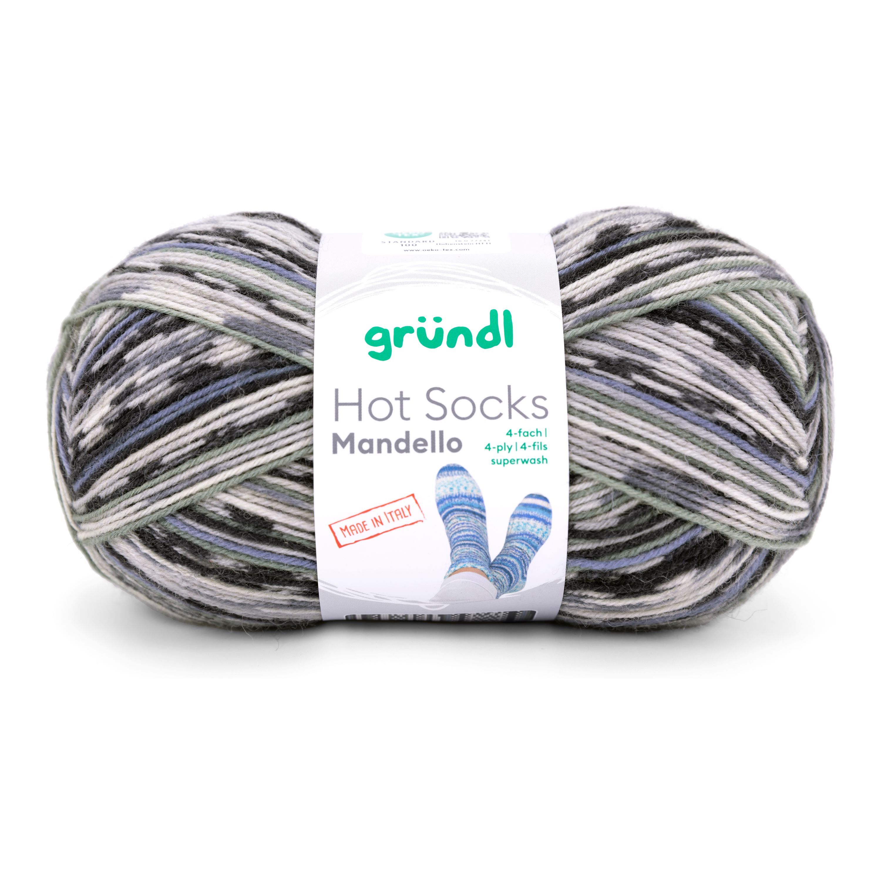 100g Hot Socks Mandello 4fach Sockenwolle Garn zum stricken häkeln GP 74,90€/1kg
