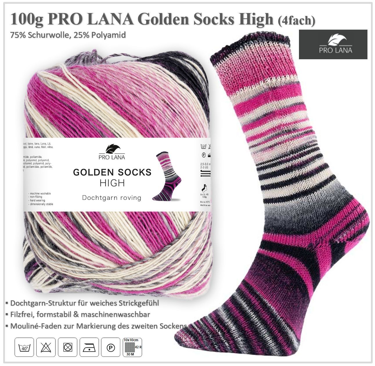 100g ProLana Golden Socks HIGH Sockenwolle Dochtgarn-Struktur kräftige Farben
