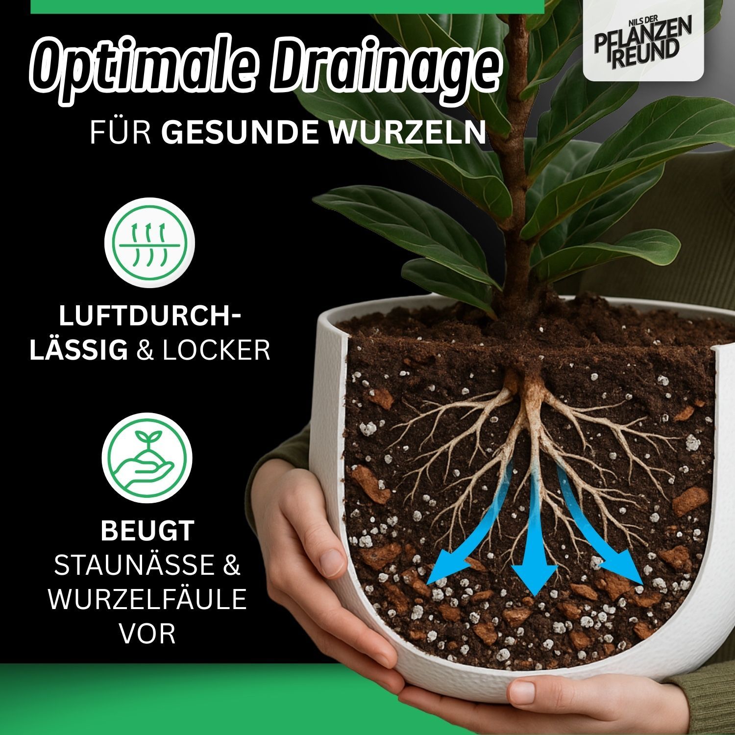 • Bei zu trockenem und staubendem Substrat bitte Atemschutz verwenden.