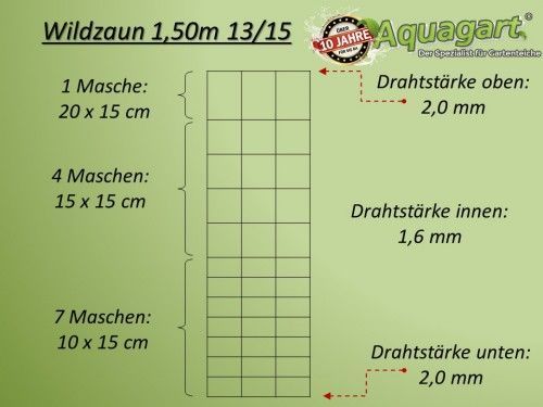 • 150m Wildzaun Forstzaun 100/15/15+ Pfosten + Spanndraht