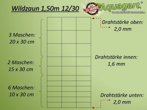 100m Wildzaun Forstzaun Knotengeflecht 150/12/30+ Pfosten + Spanndraht