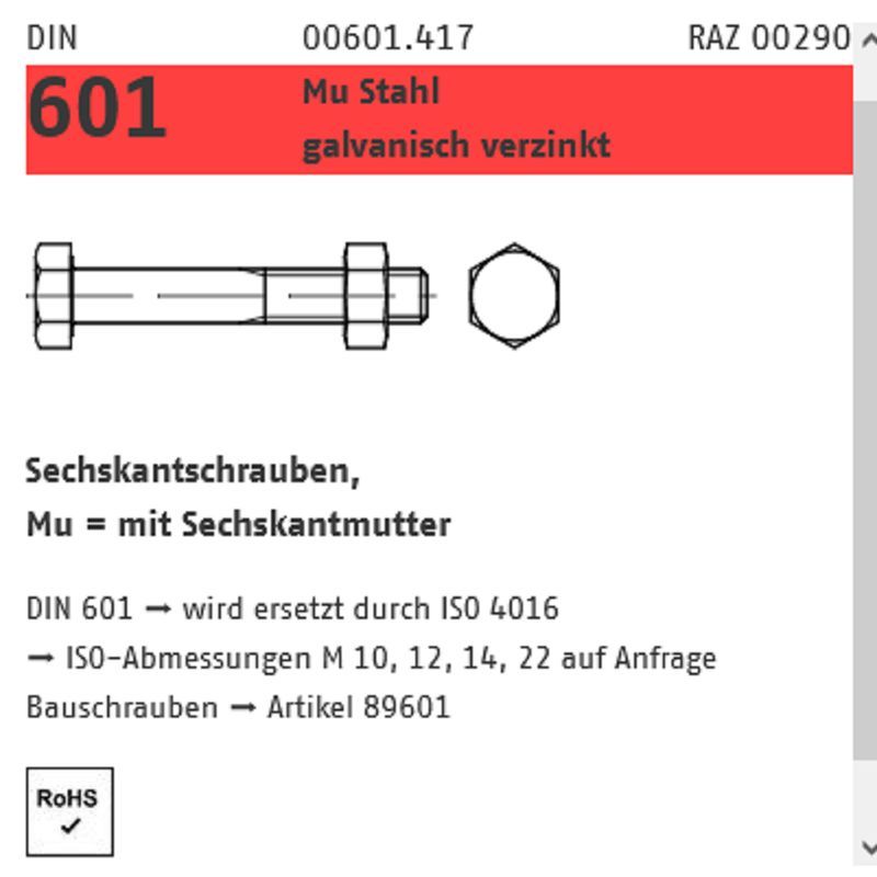 100St Sechskantschraube M8x50 mit Mutter Reyher verzinkt