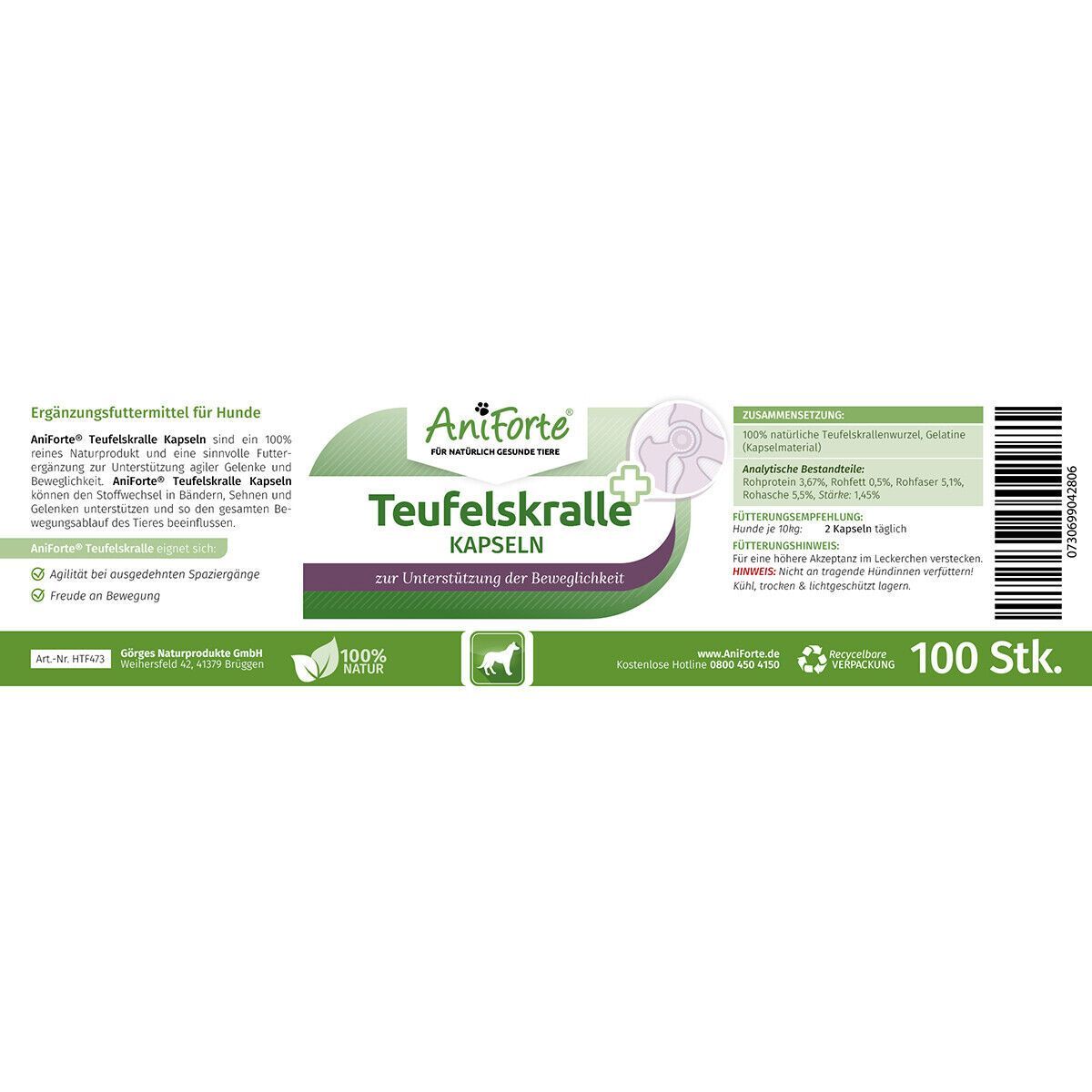 AniForte 100Stk. AniForte Teufelskralle Gelenk Kapseln für Hunde 100% Naturprodukt
