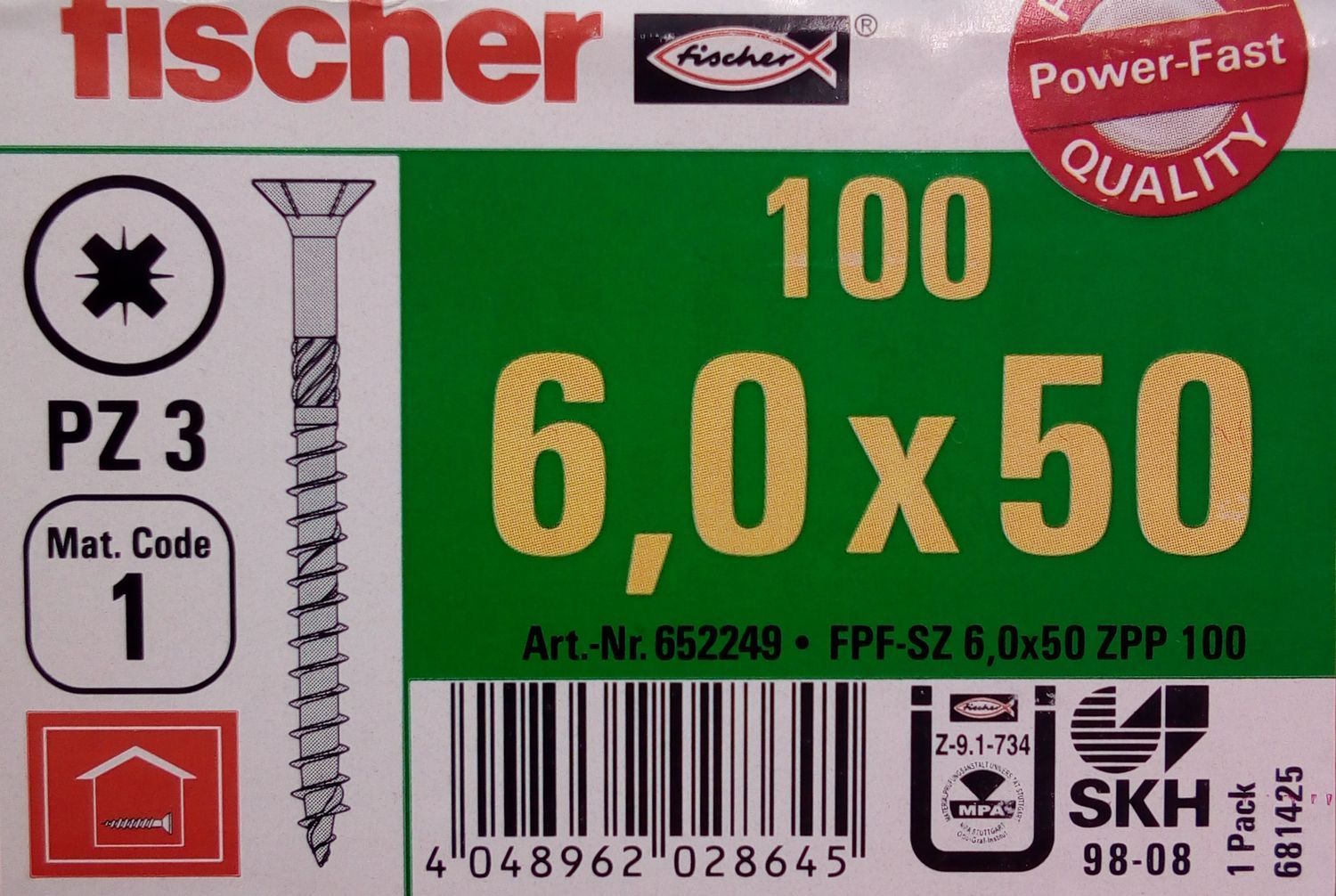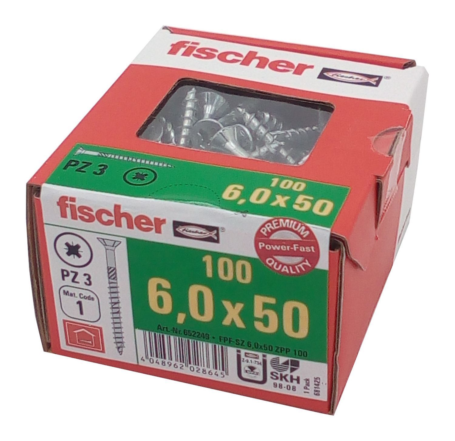 100x fischer Holzbauschrauben 6,0x50mm PZ2 Holzschrauben verzinkt Teilgewinde