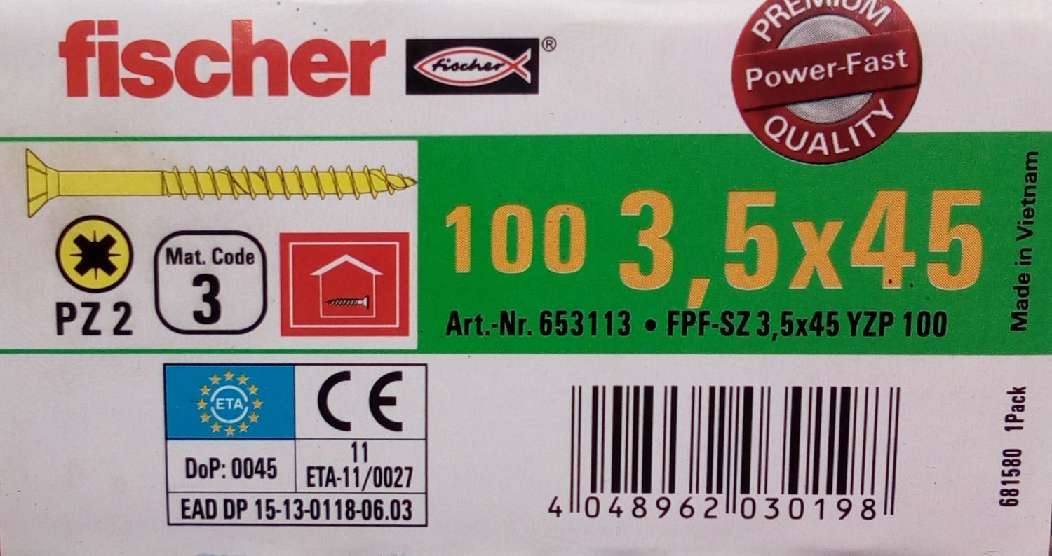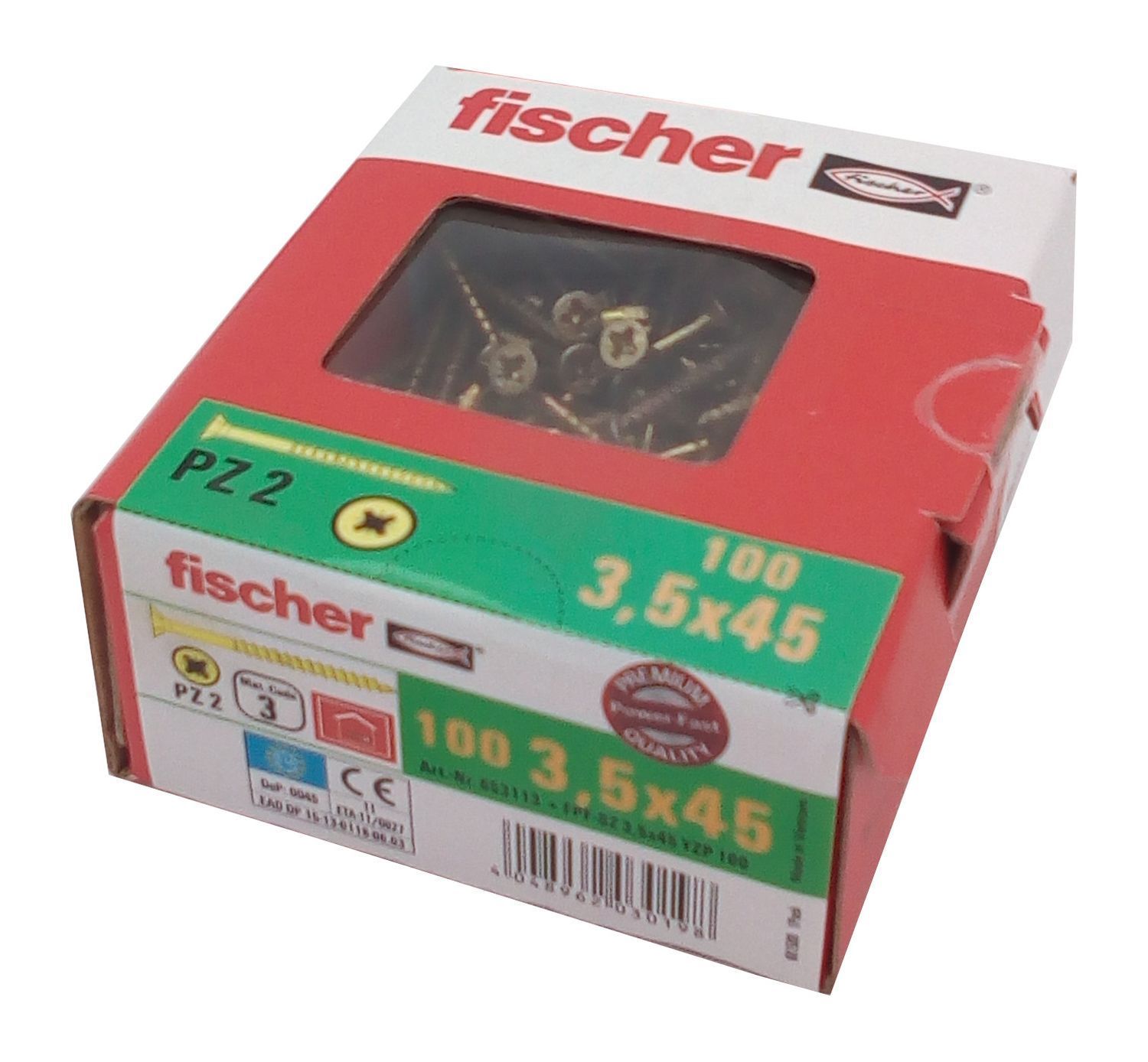 100x fischer Spanplattenschrauben 3,5x45 PZ2 Holzschrauben verzinkt Teilgewinde