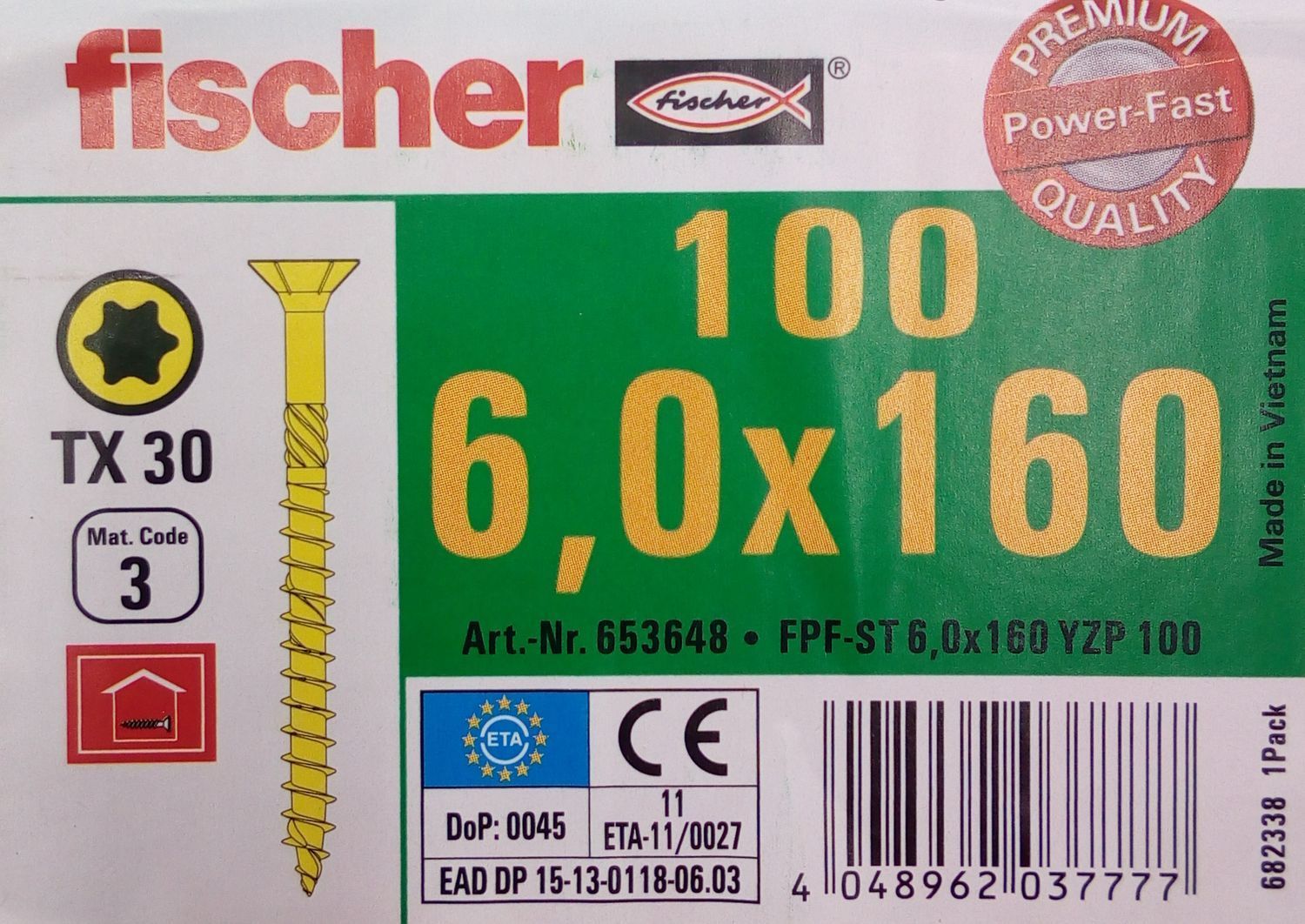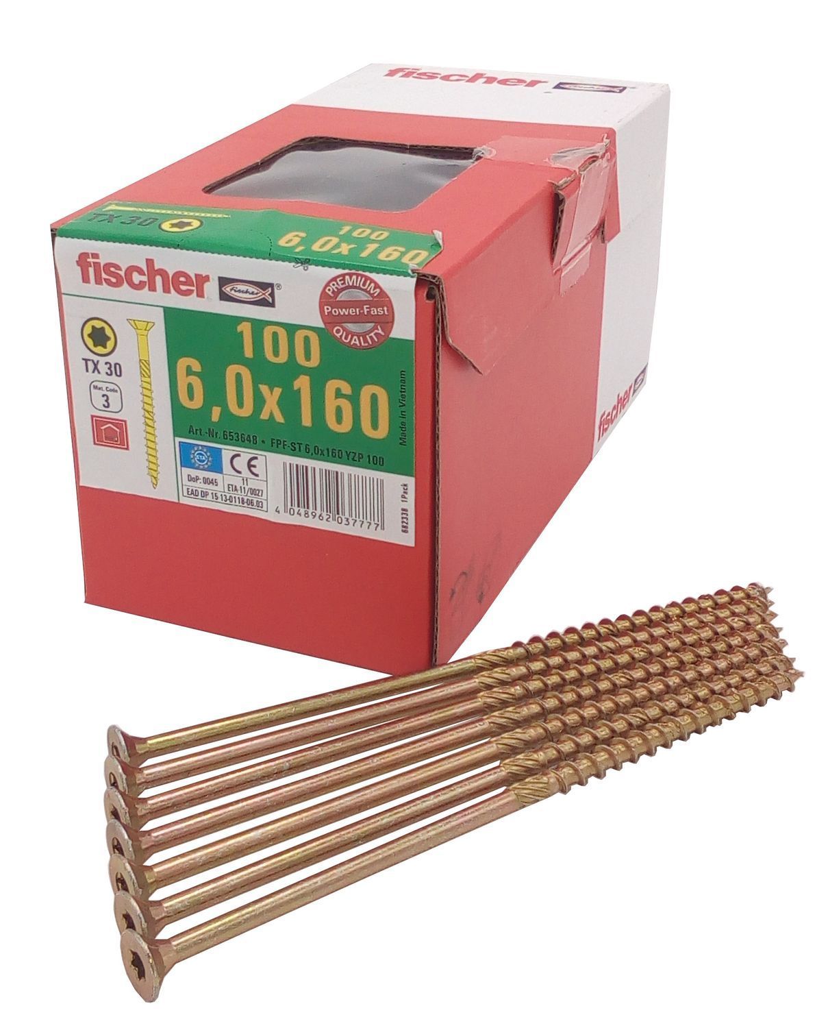 100x fischer Spanplattenschrauben 6,0x160 Power Fast TX Senkkopf Teilgewinde