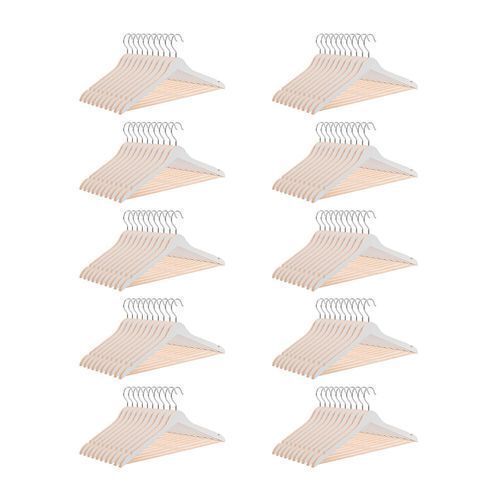 100x Kleiderbügel Holz Stabile Holzkleiderbügel Holzbügel Natur Weiß PAFEN®