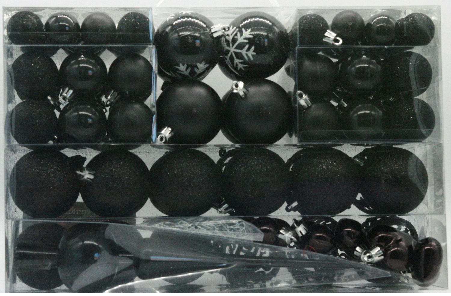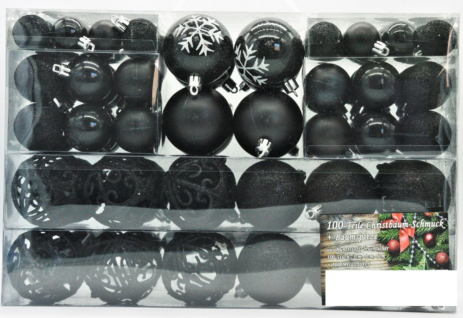 101 teiliges Set Weihnachtskugeln Schwarz mit Spitze und Metallhaken