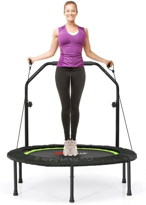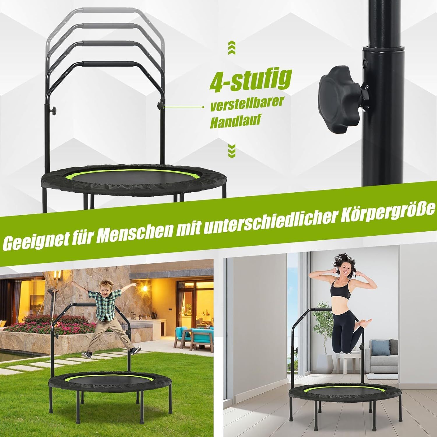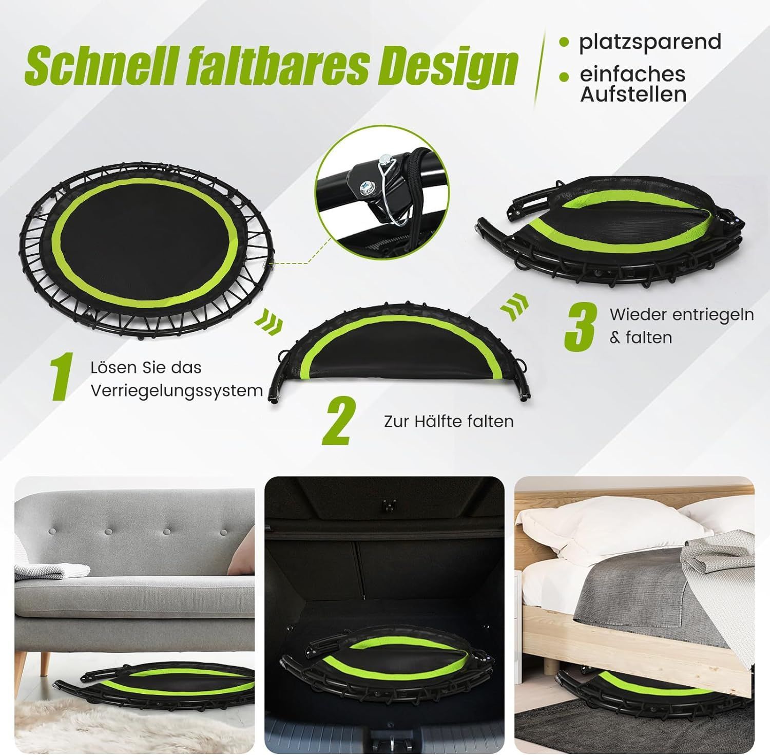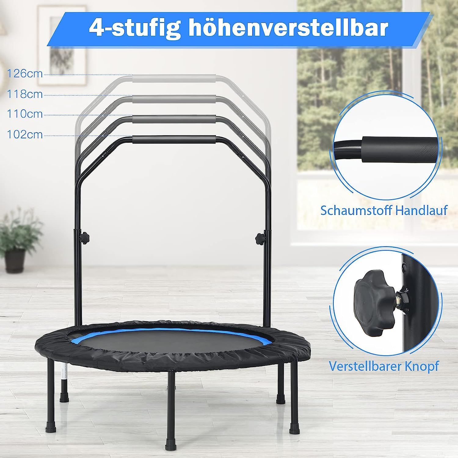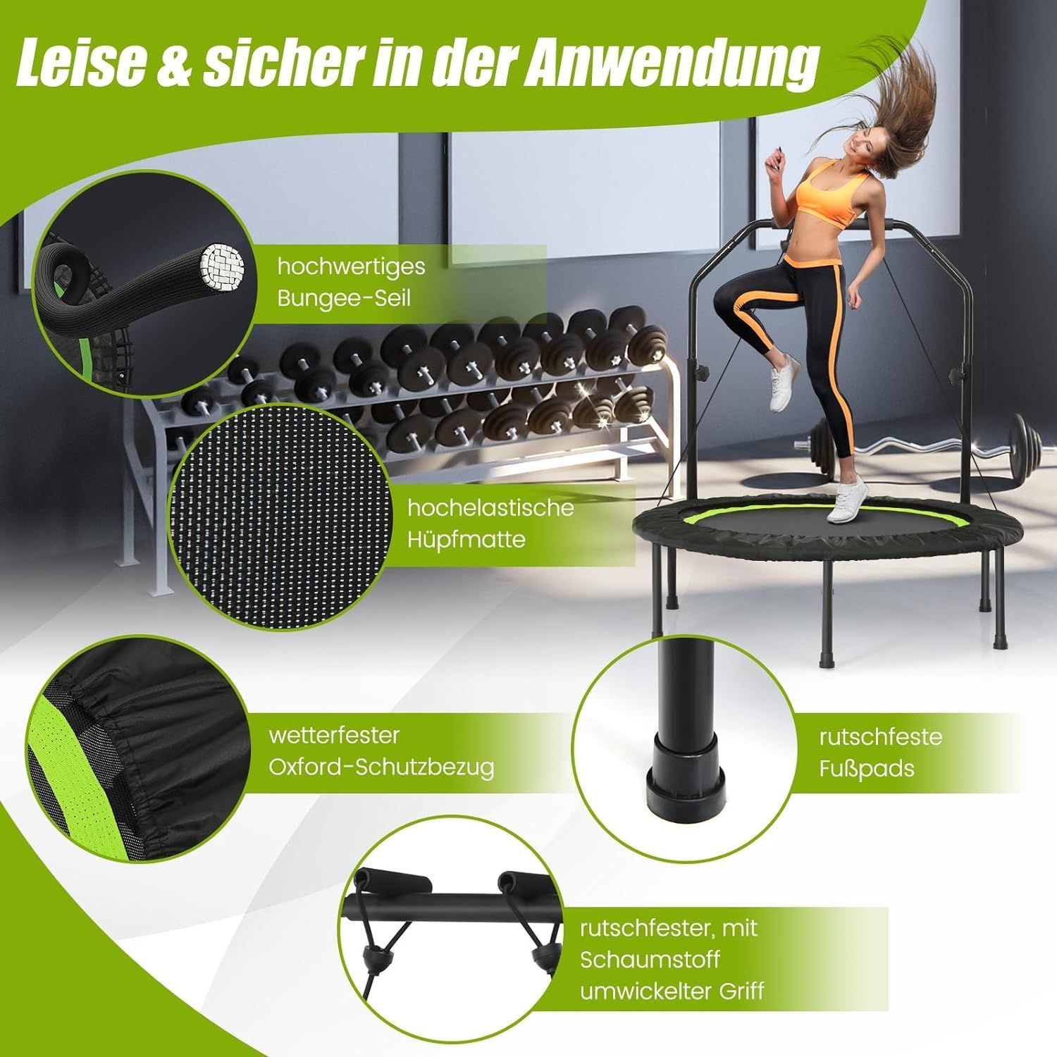 101cm Mini Trampolin, Fitness Trampolin mit höhenverstellbarm Haltegriff