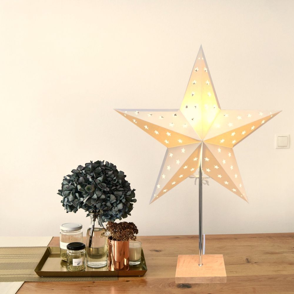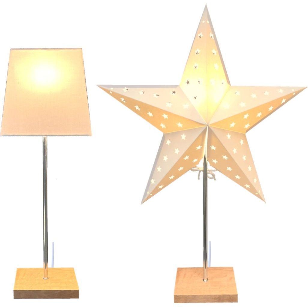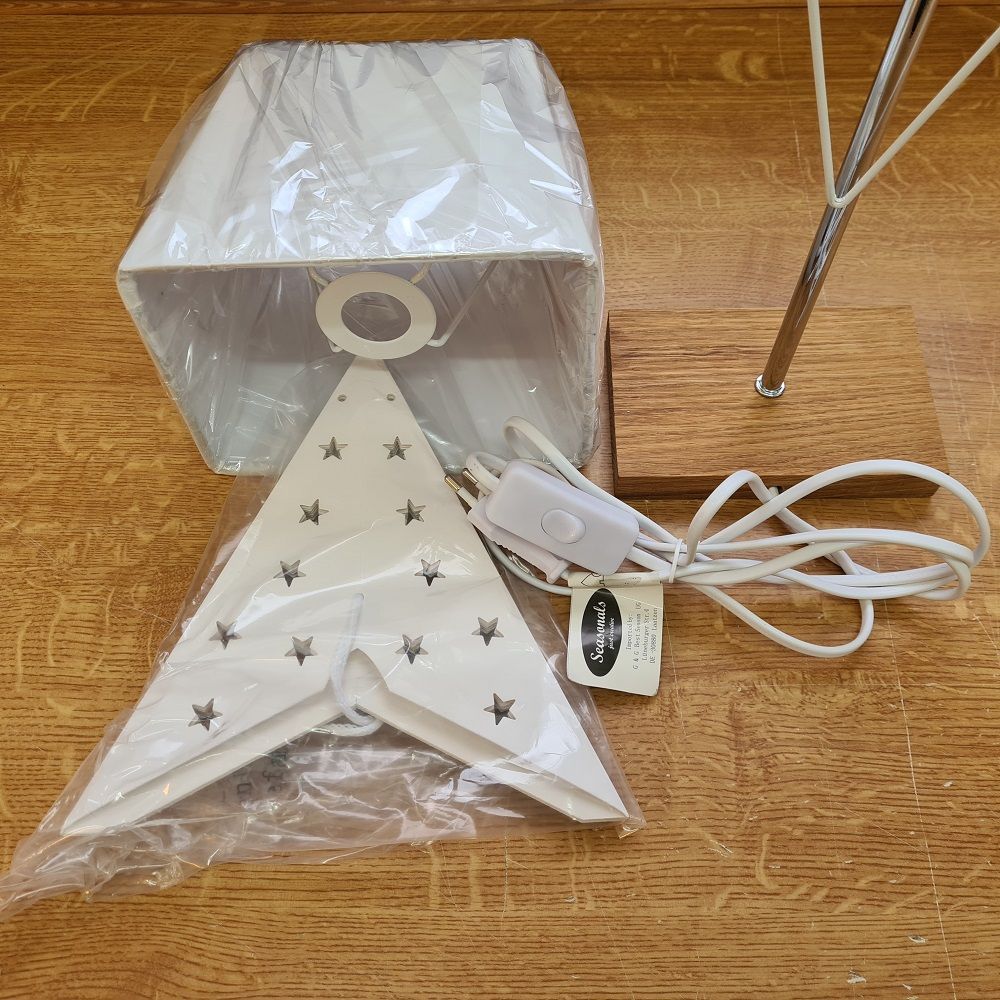 1051 Leuchter "Dual" weiß Edelstahl Holzfuß E14 mit Schalter Zuleitung 1,8m