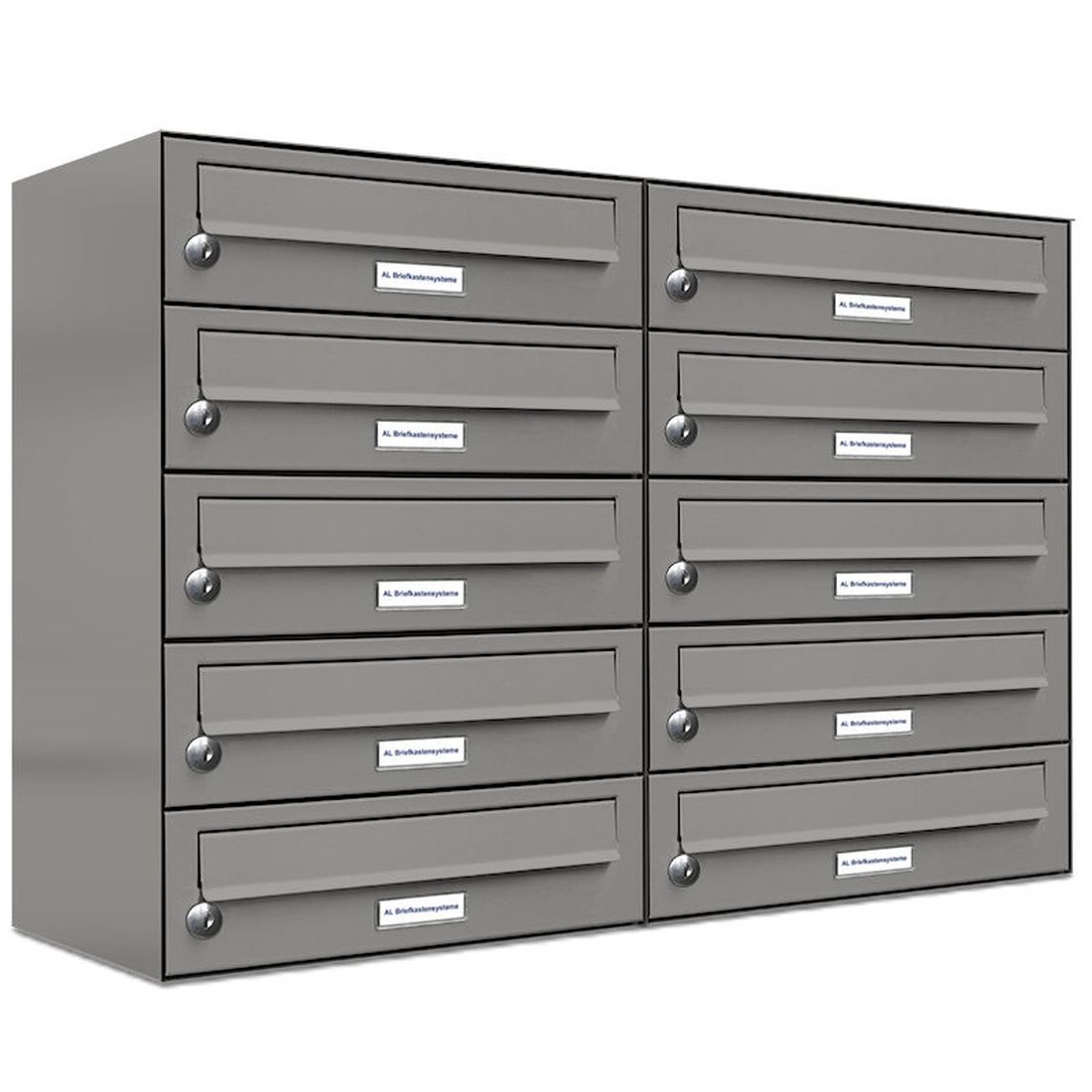 10er Premium Briefkasten Aluminiumgrau RAL 9007 für Außen Wand Postkasten 2x5