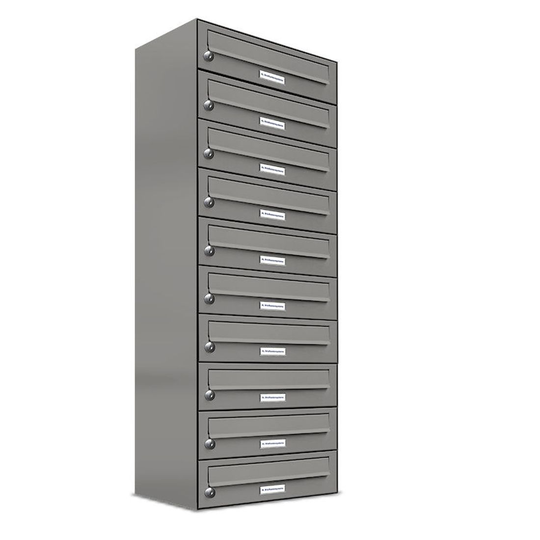 10er Premium Briefkasten Aluminiumgrau RAL Farbe 9007 für Außen Wand Postkasten