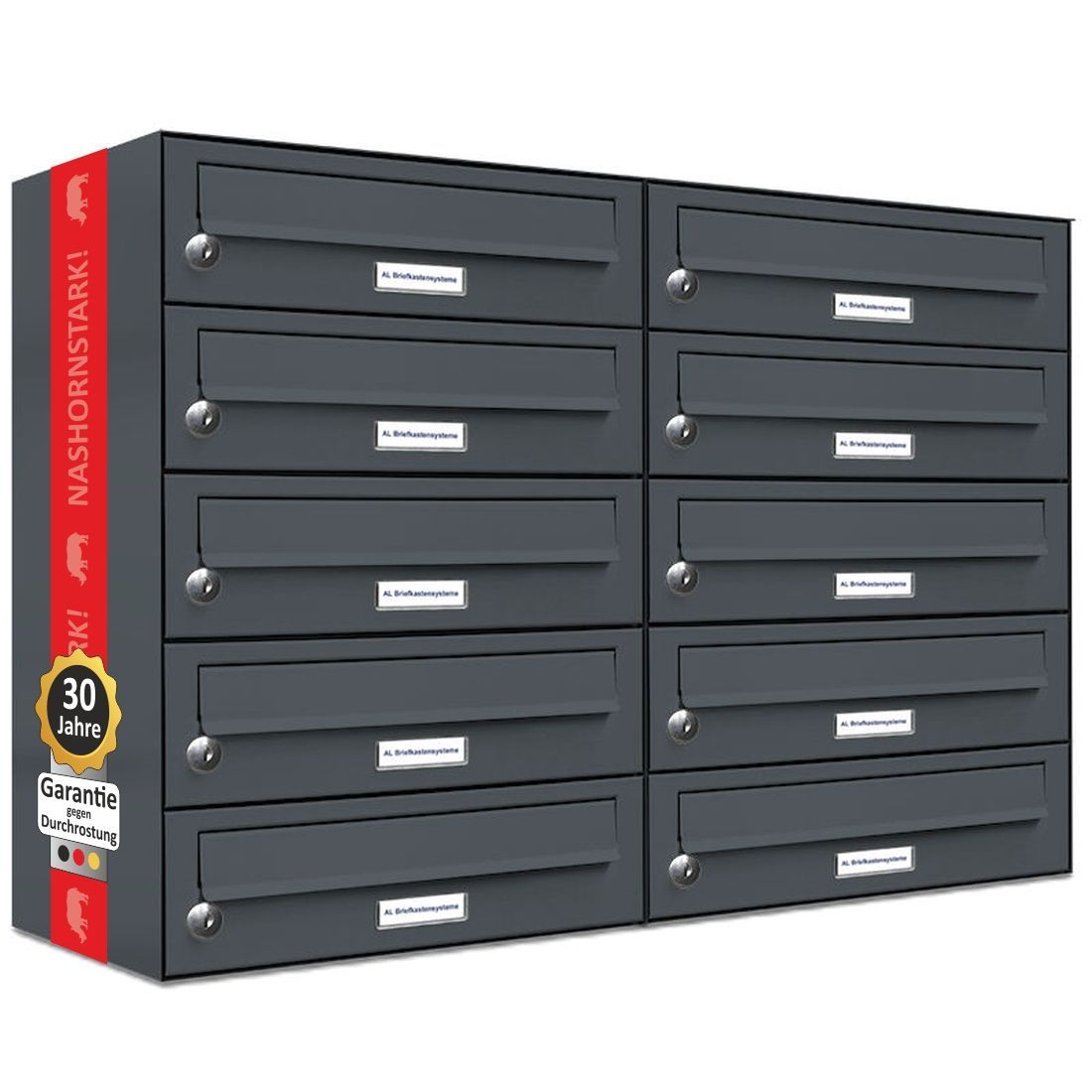 10er Premium Briefkasten Anthrazit RAL Farbe 7016 für Außen Wand Postkasten 2x5
