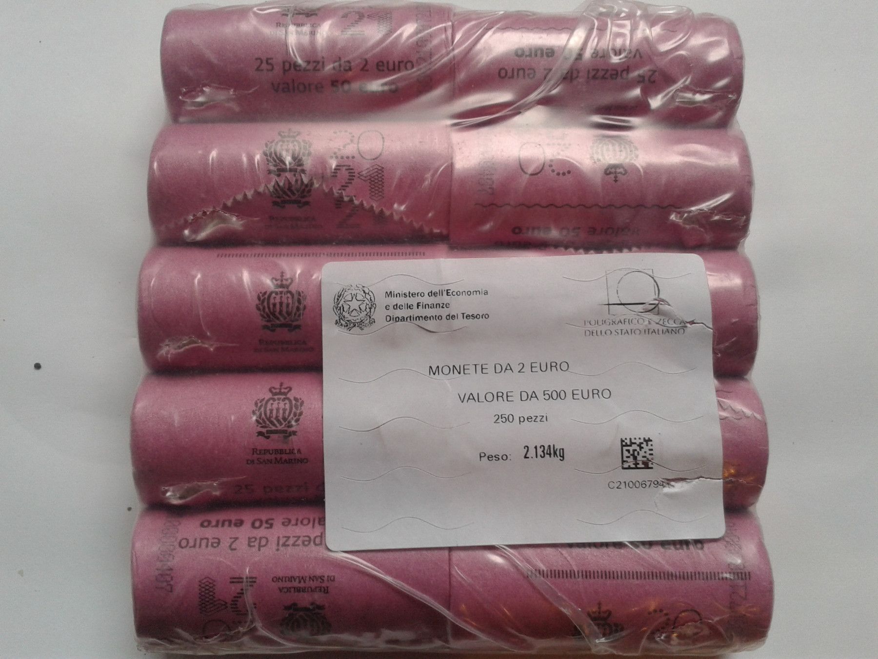 10er Rollenpaket 25 x 2 euro 2021 Rolle San Marino 2021 Heiliger Marinus 10 Rollen