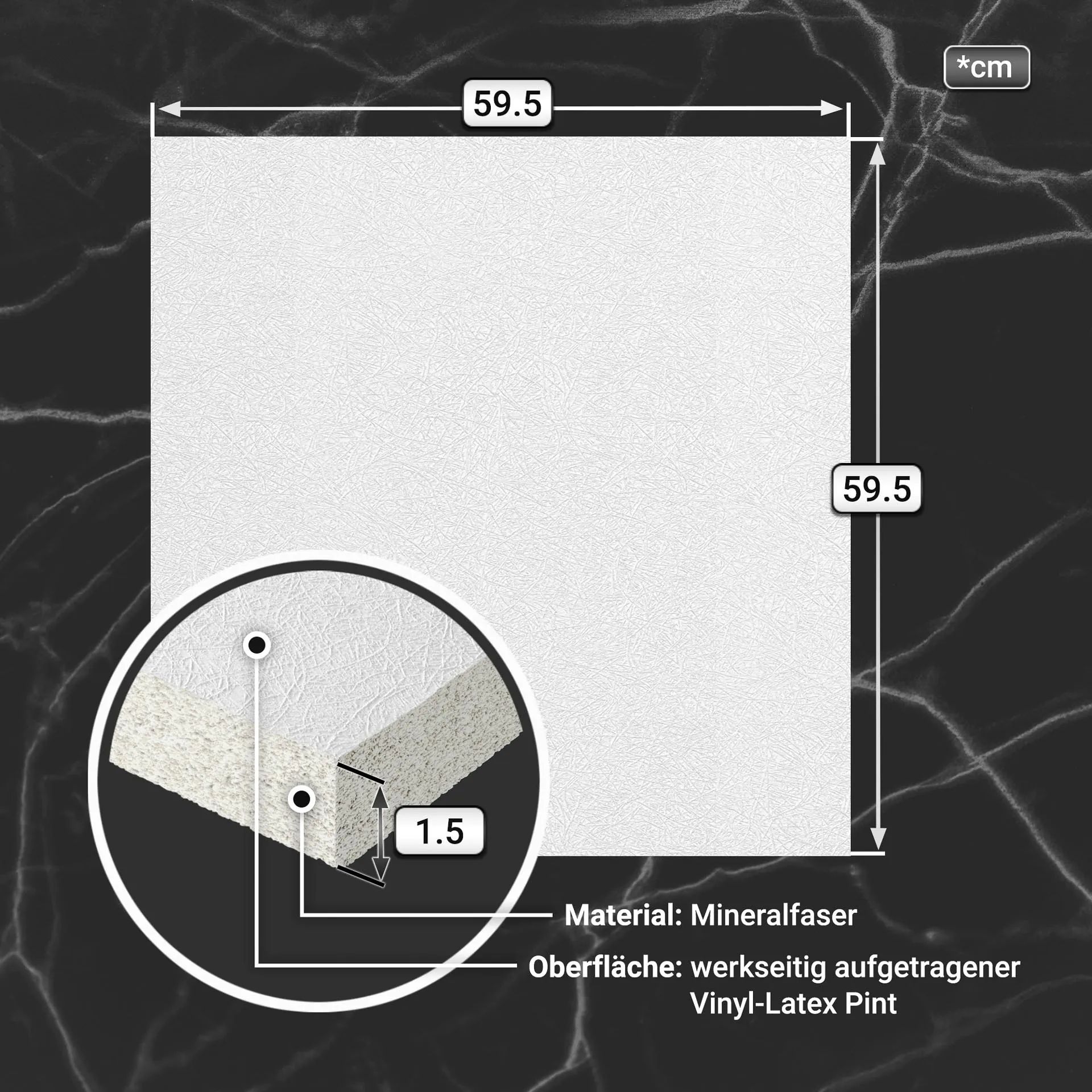 10er-Set Calgary | Mineralfaserplatte | 60x60cm | Weiß | Rasterdeckenplatten | Glasf