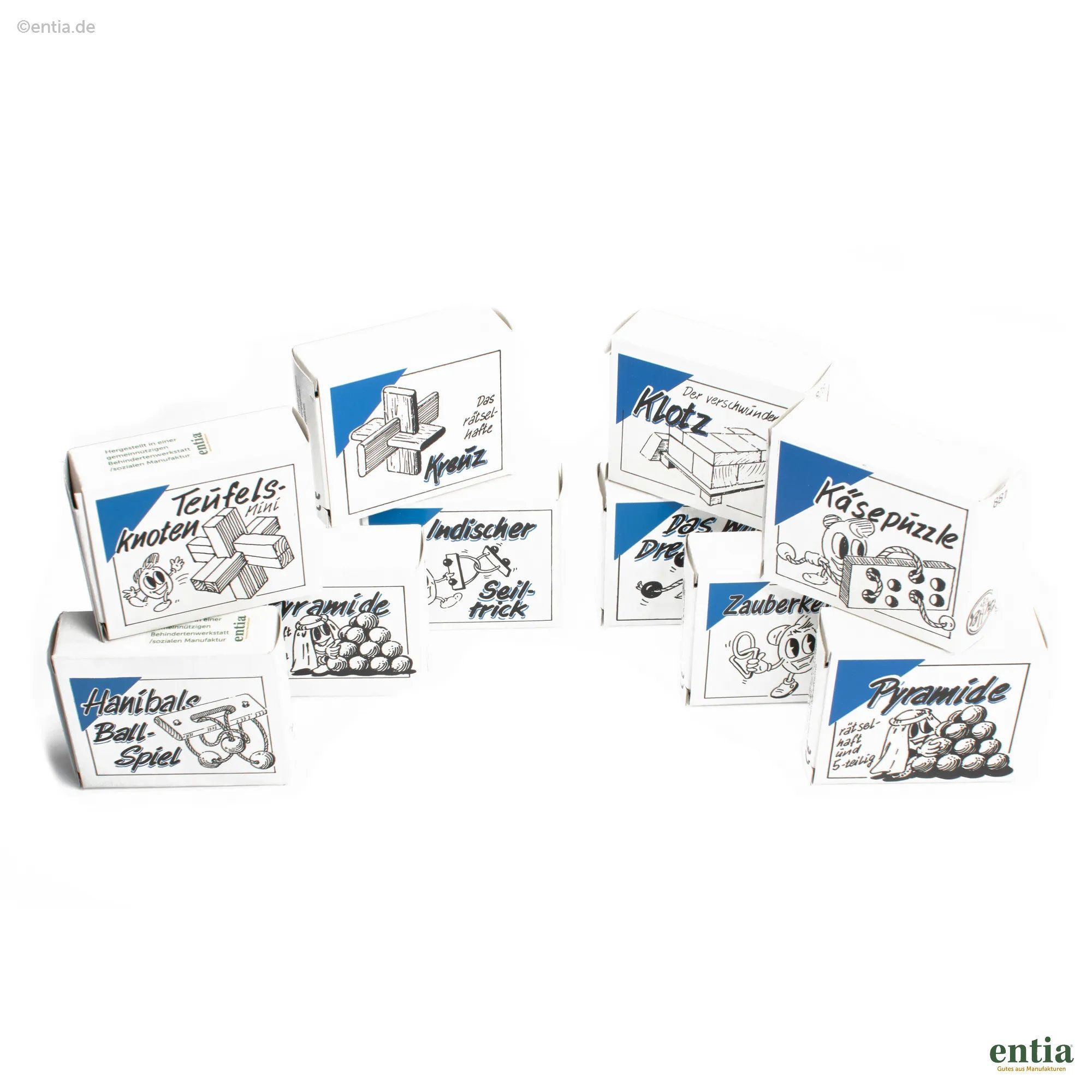 Dieses Set enthält zehn verschiedene Mini-Geduldspiele für Knobelfreunde