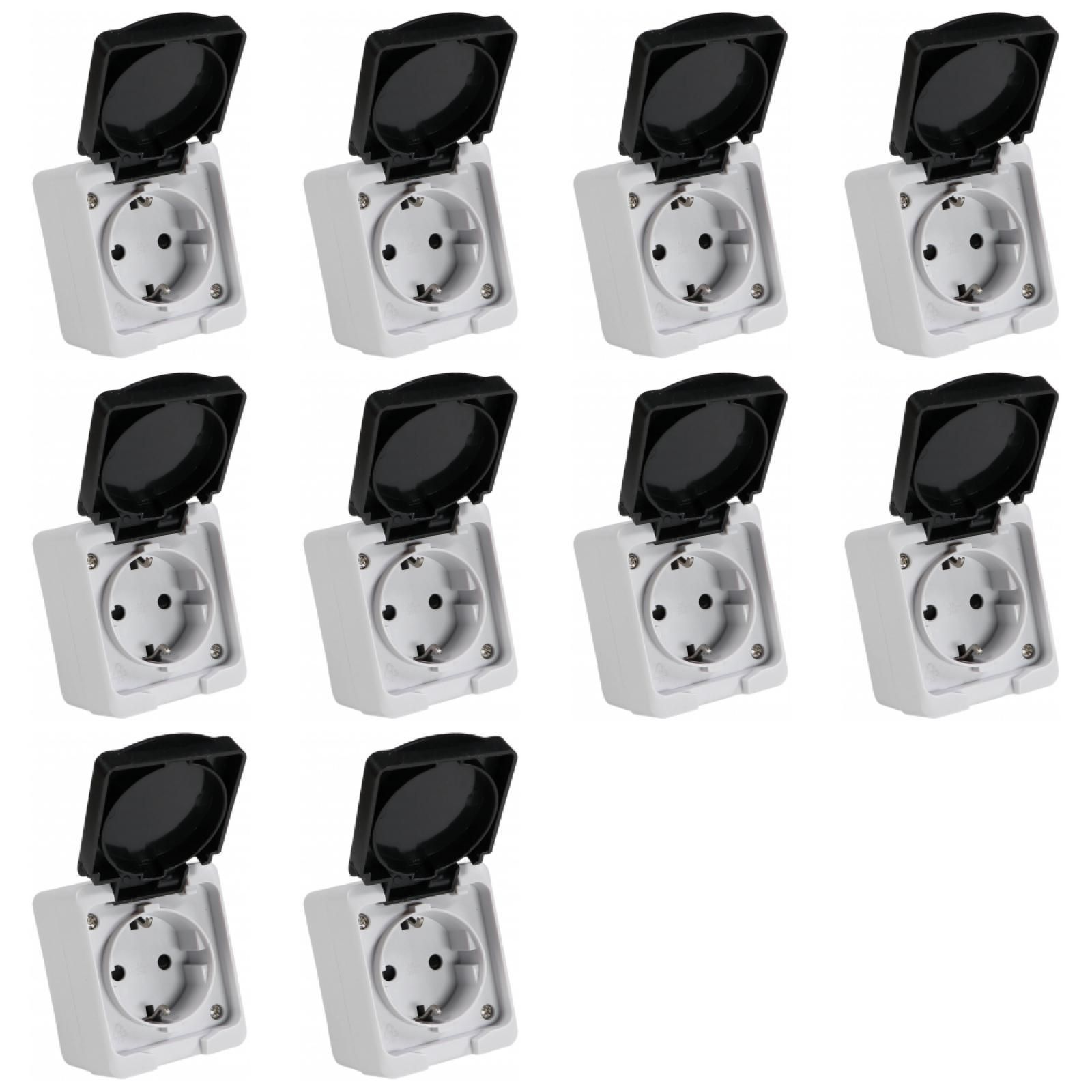 10er Set REV AquaMini Feuchtraum Steckdose IP54 kompakt platzsparend mini AP