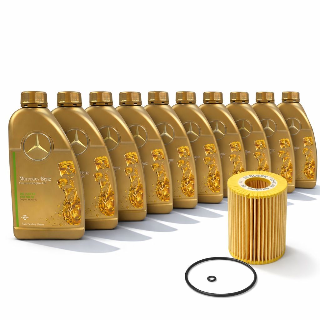 10L Mercedes 5W30 Motoröl 229.52 + Bosch Ölfilter für OM642 V6 CDI A6421800009