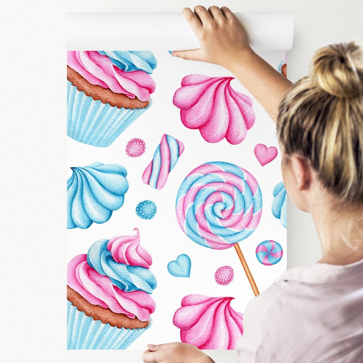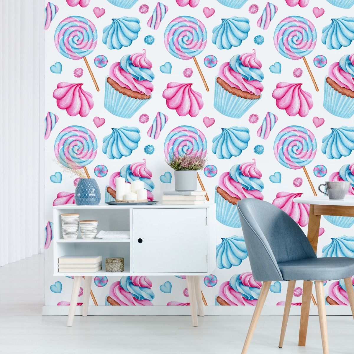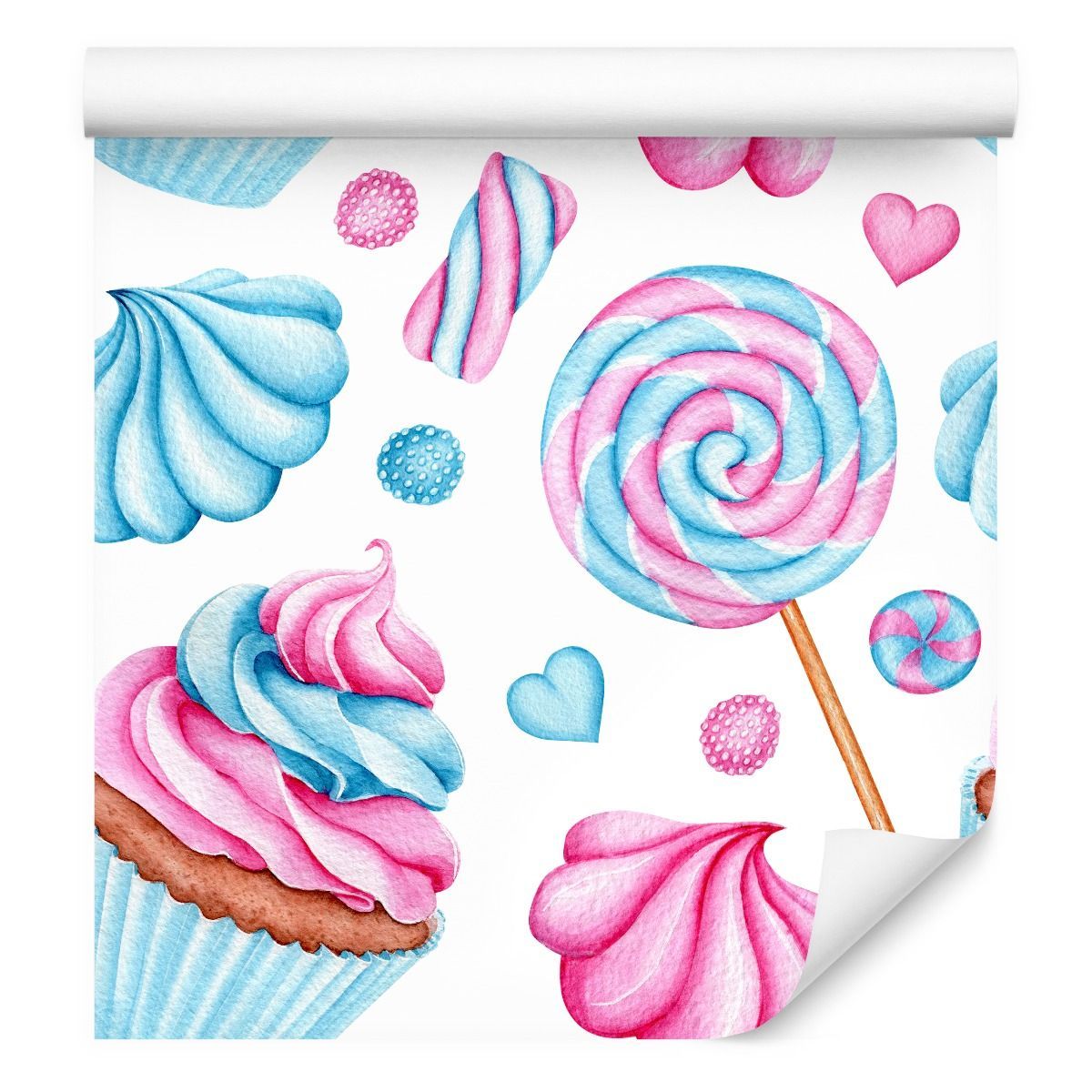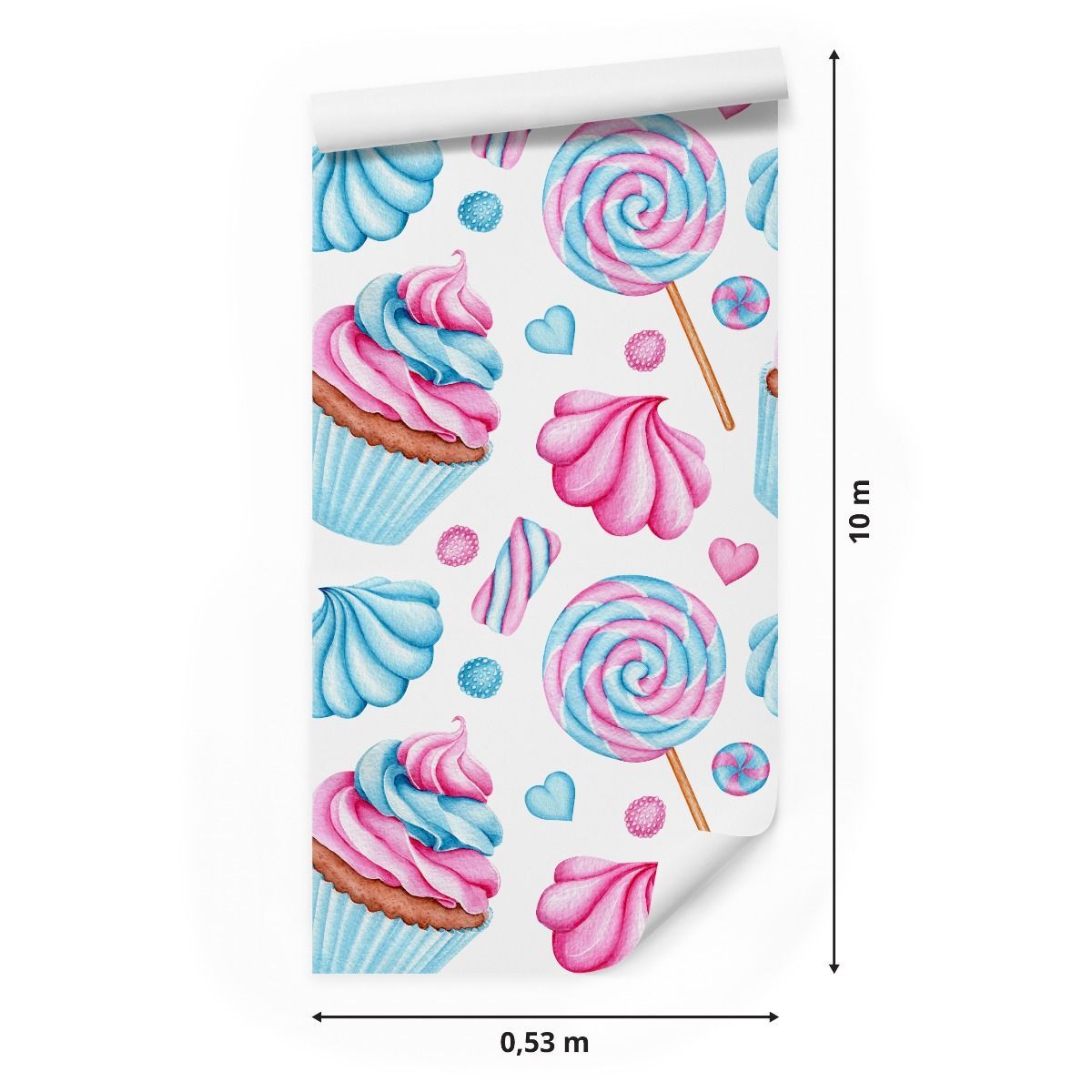 10m VLIES TAPETE Rolle Esszimmer Cupcakes Lutscher Herzen Dekor XXL 5615