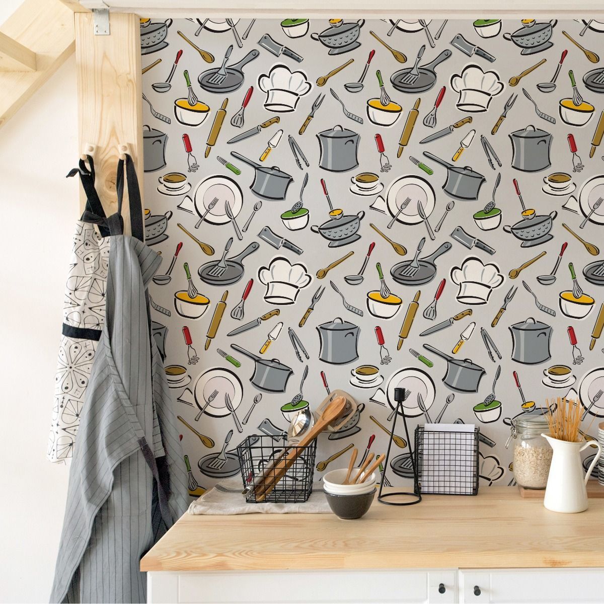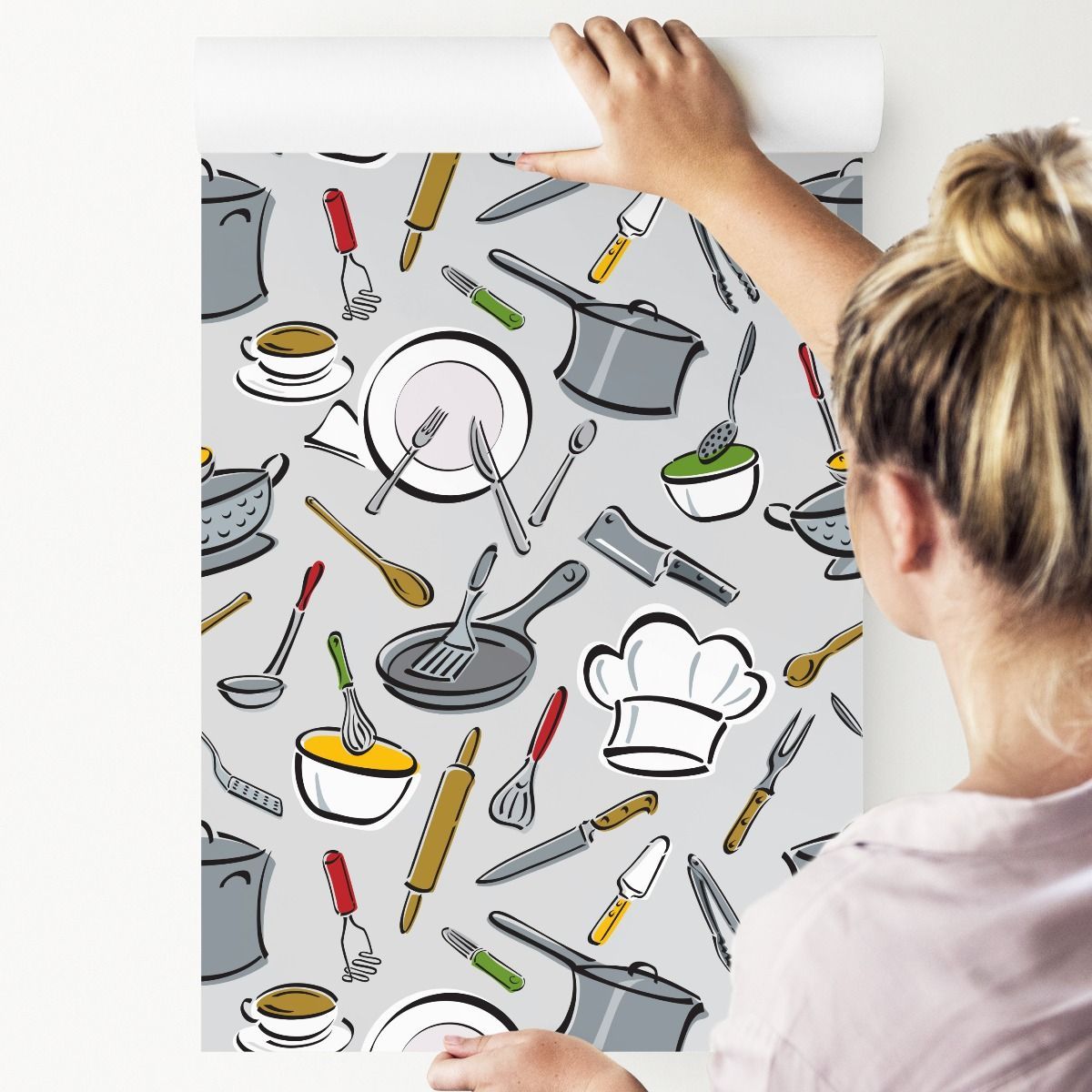 10m VLIES TAPETE Rolle Esszimmer Küche Kaffee Geschirr Besteck Gemalt XXL 3900