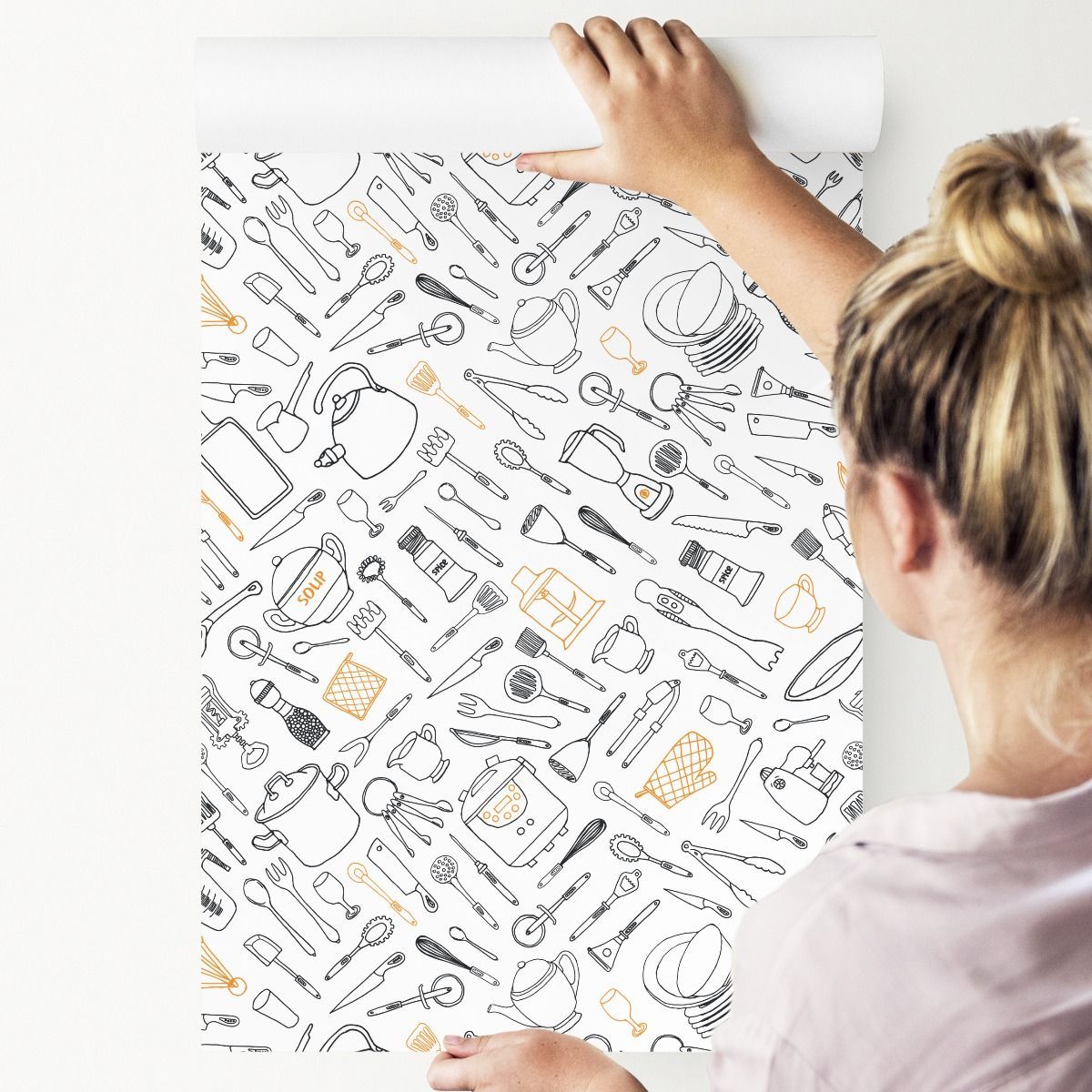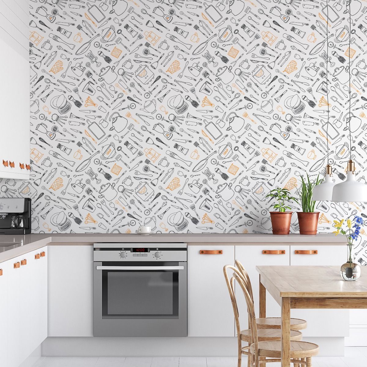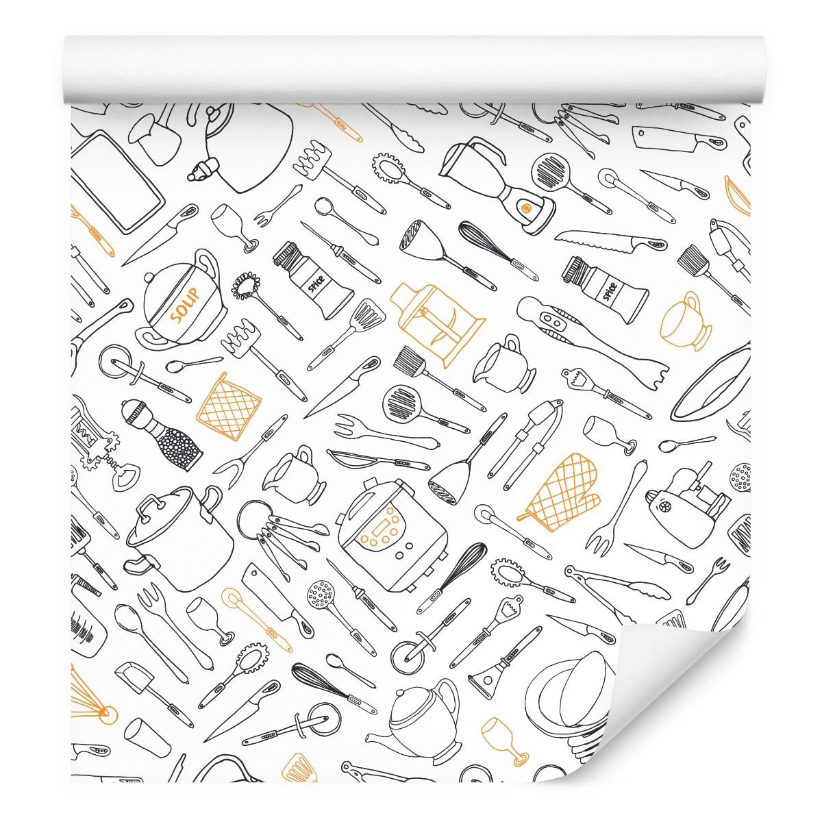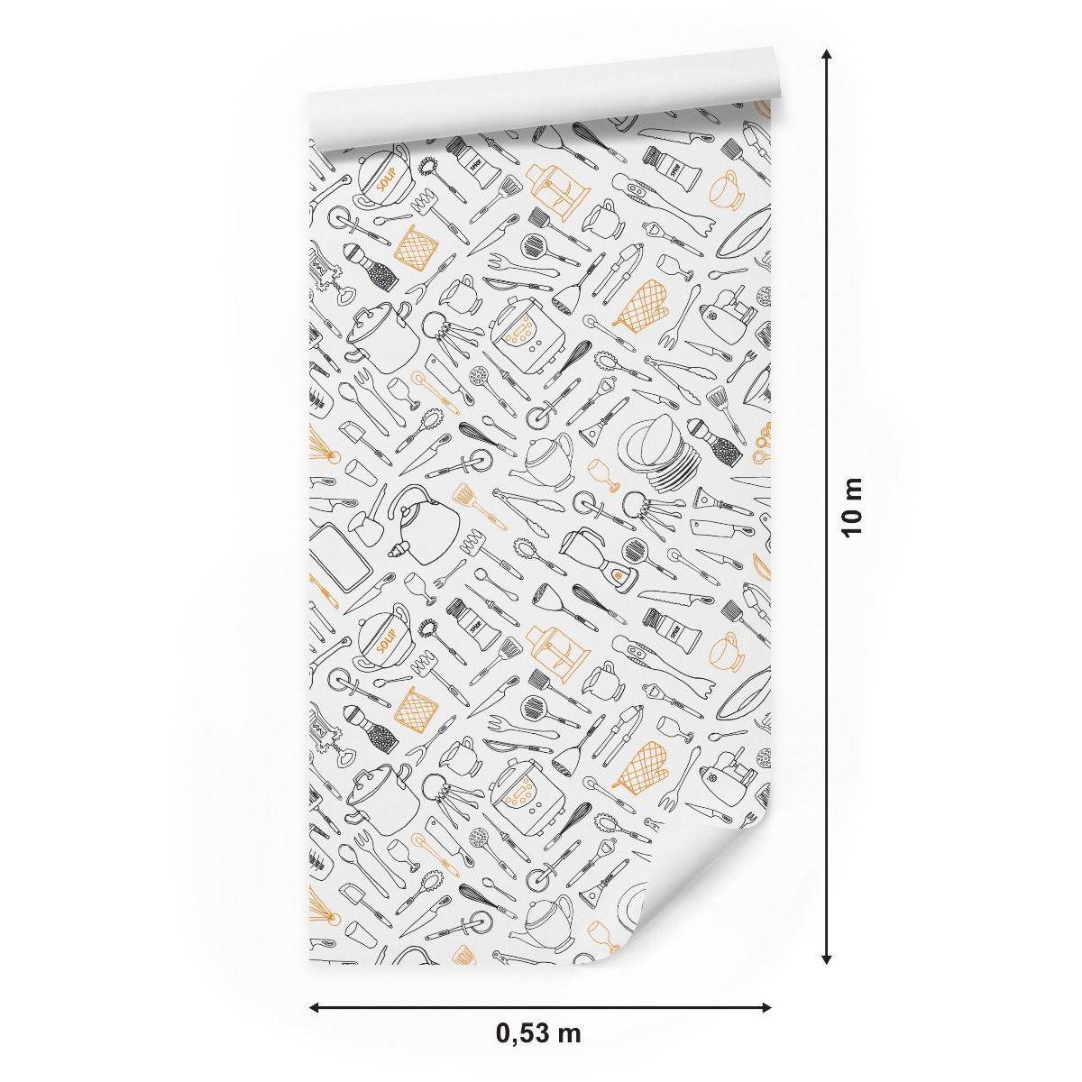 10m VLIES TAPETE Rolle Esszimmer Töpfe Pfannen Teller Besteck Kochen XXL 3937