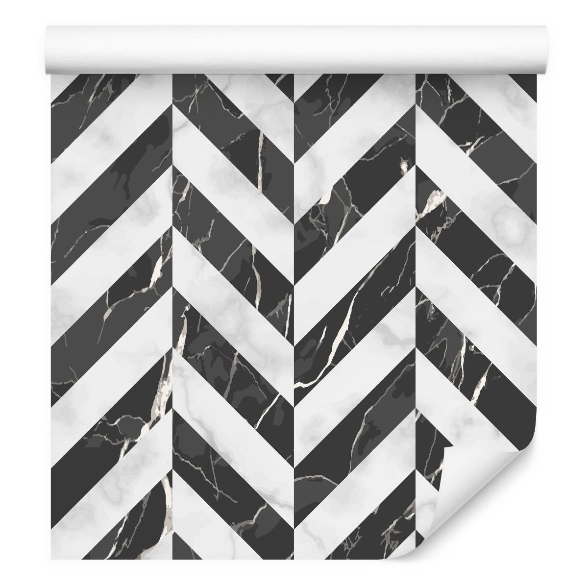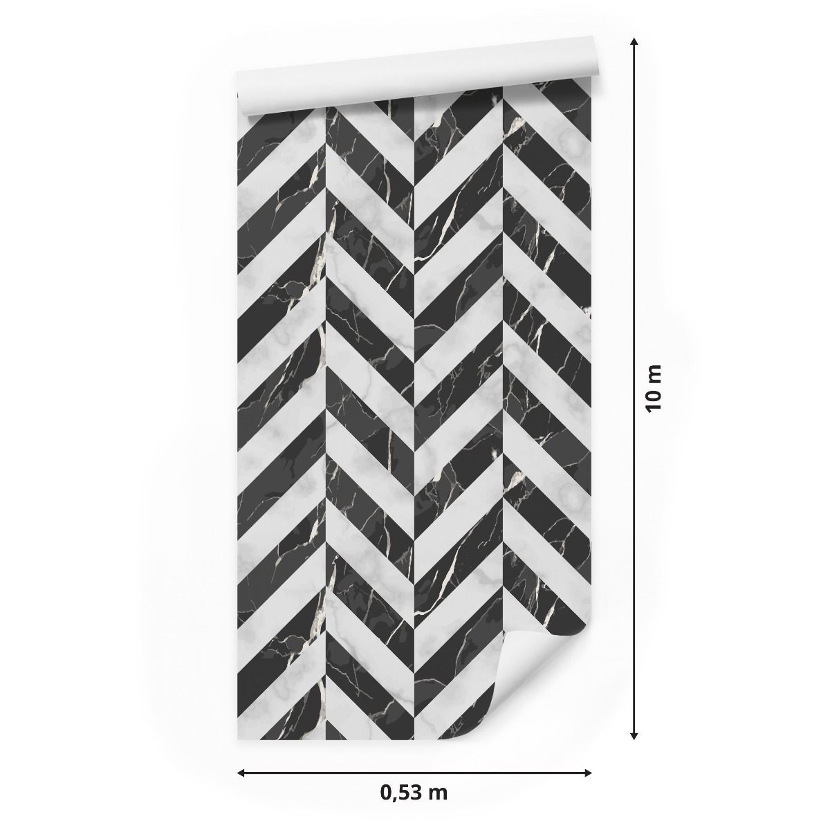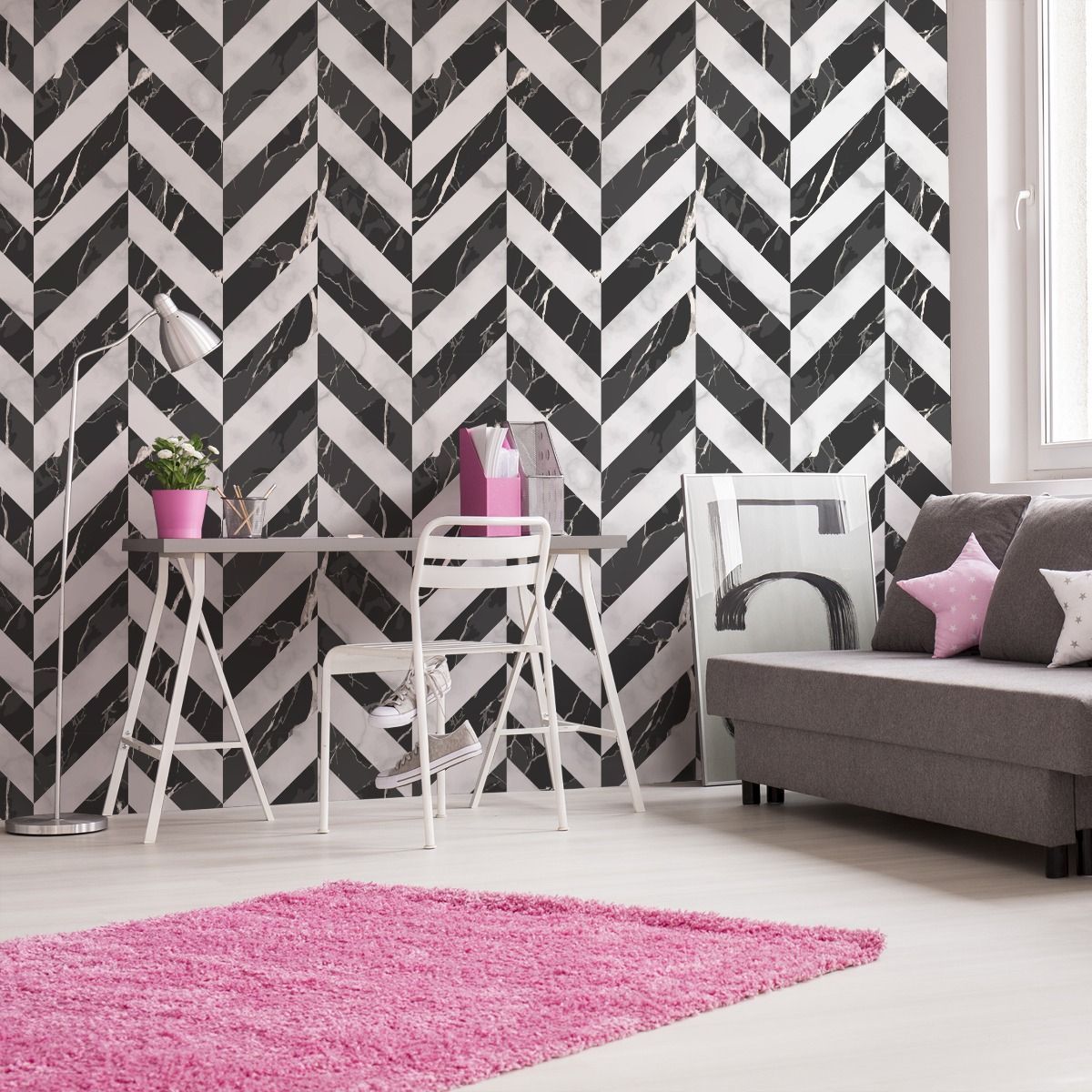10m VLIES TAPETE Rolle Für Teenager Schwarz wei§er Fischgräten Marmor 6528