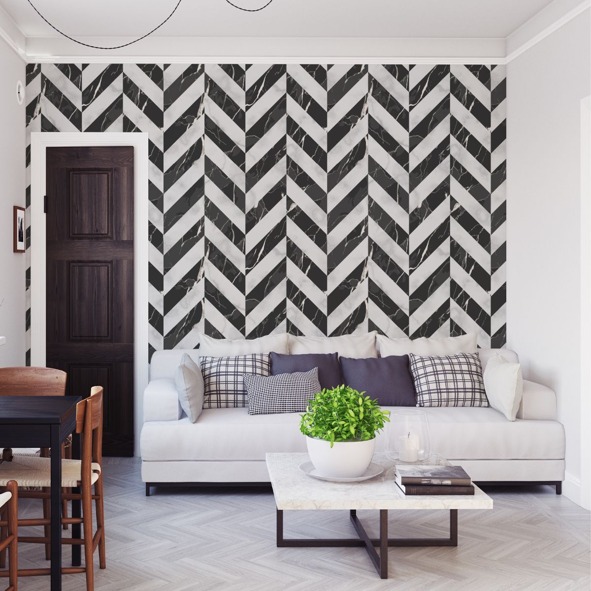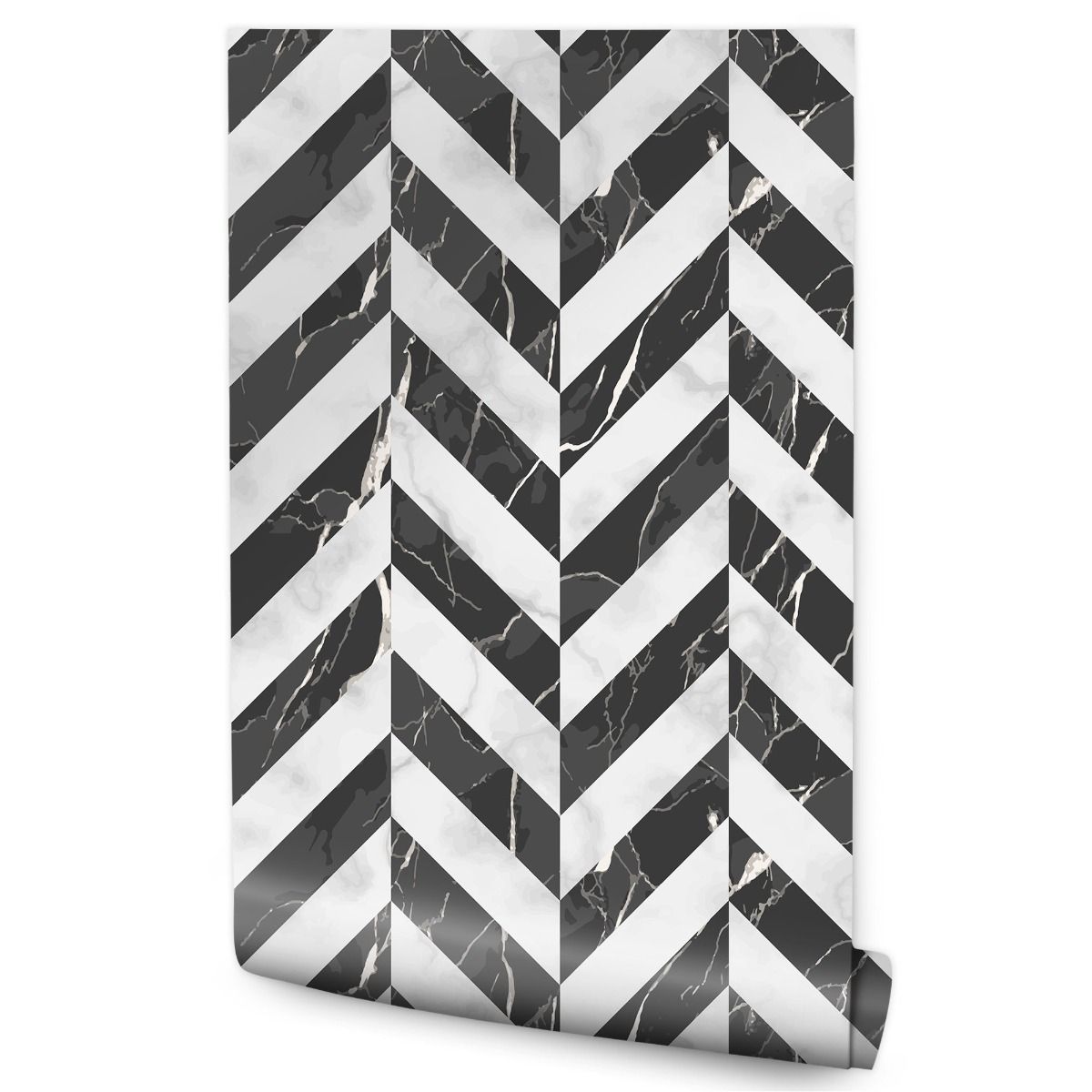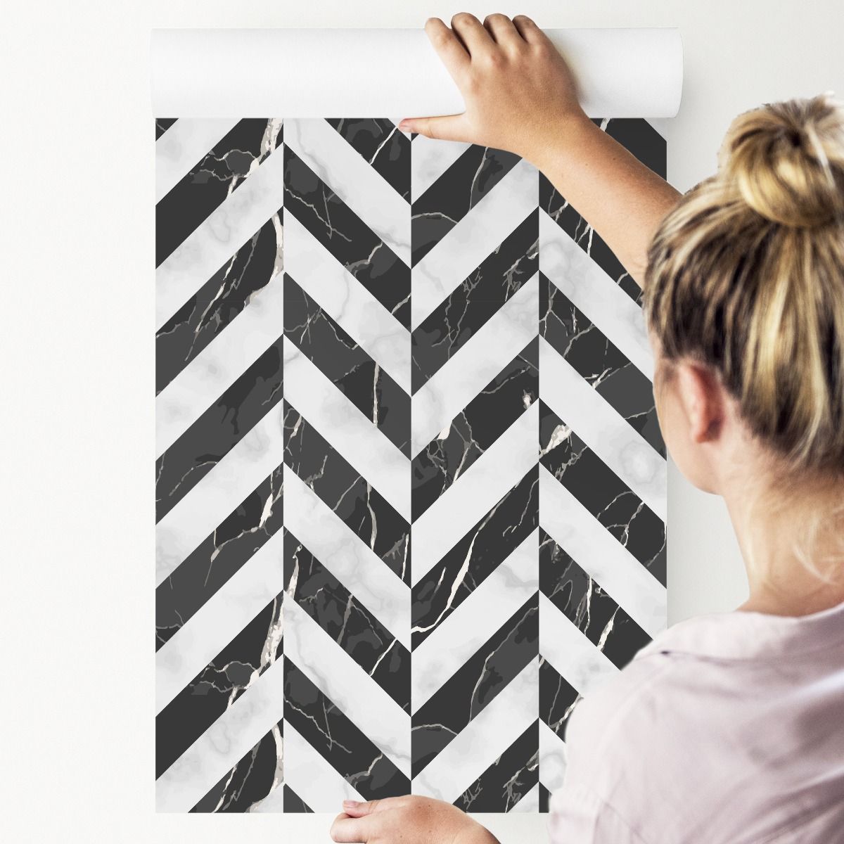 10m VLIES TAPETE Rolle Für Teenager Schwarz wei§er Fischgräten Marmor 6528