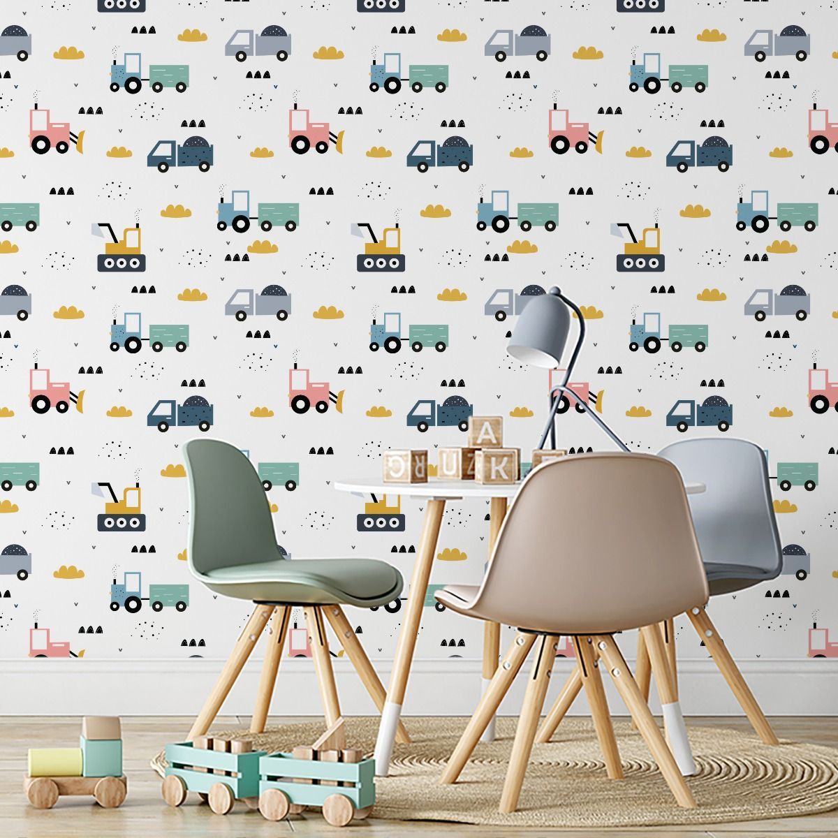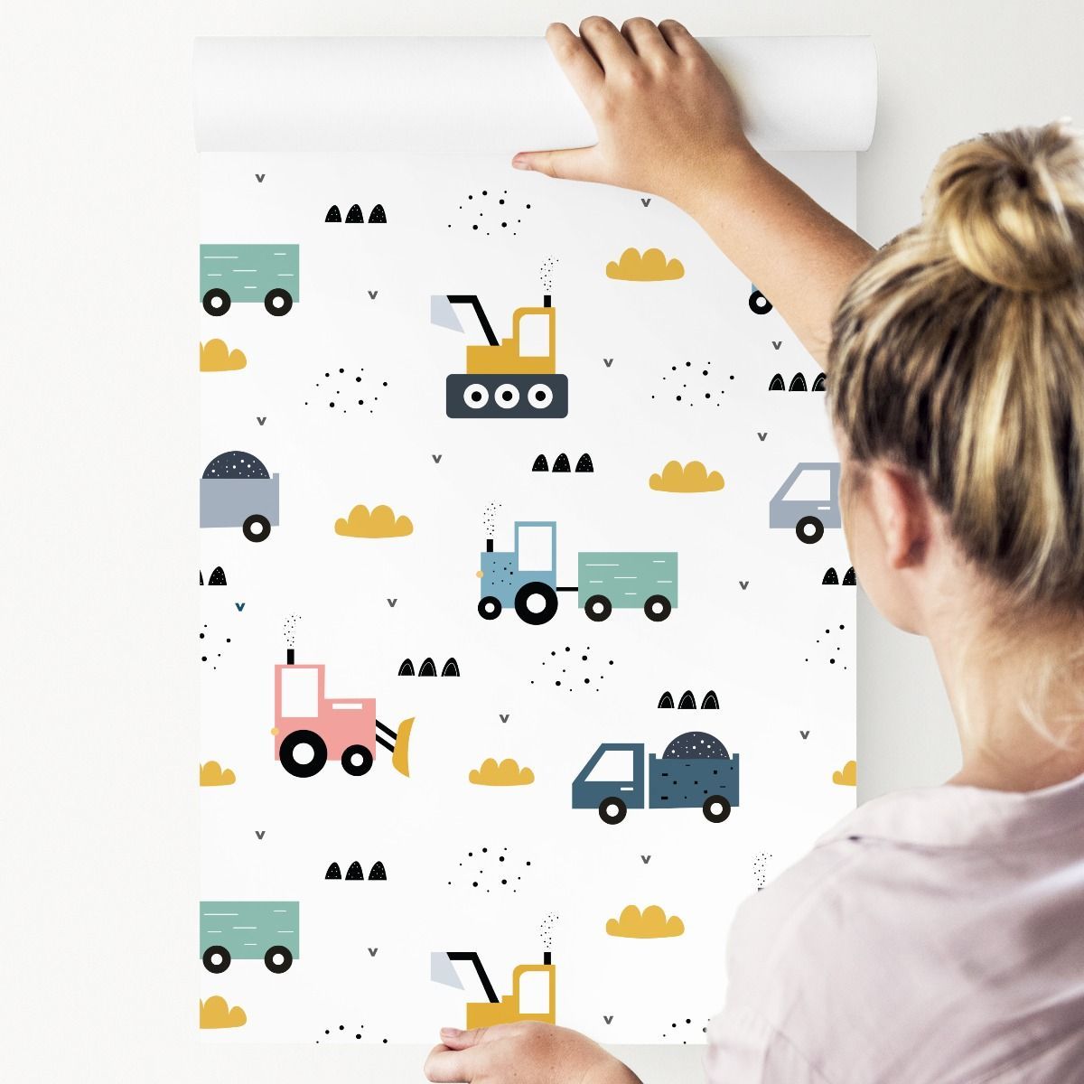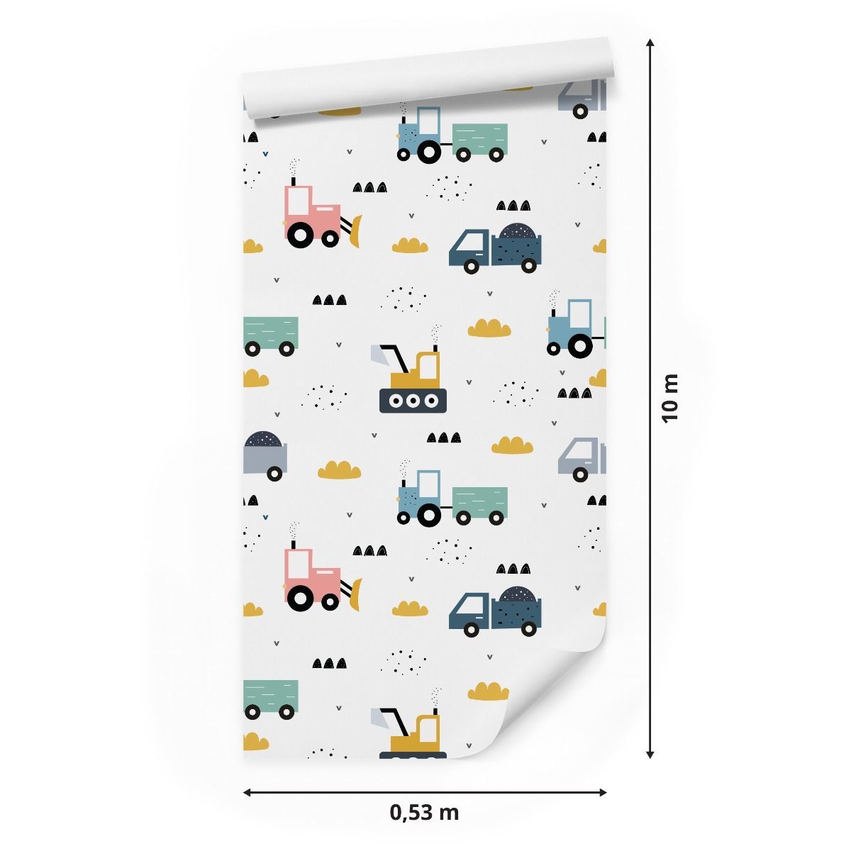 10m VLIES TAPETE Rolle Kinder Traktoren Bagger Lastwagen Dekor 5964