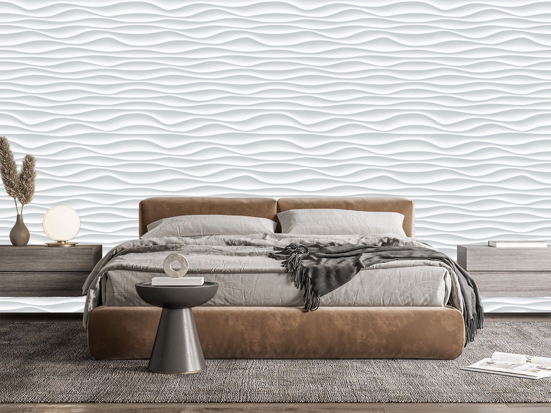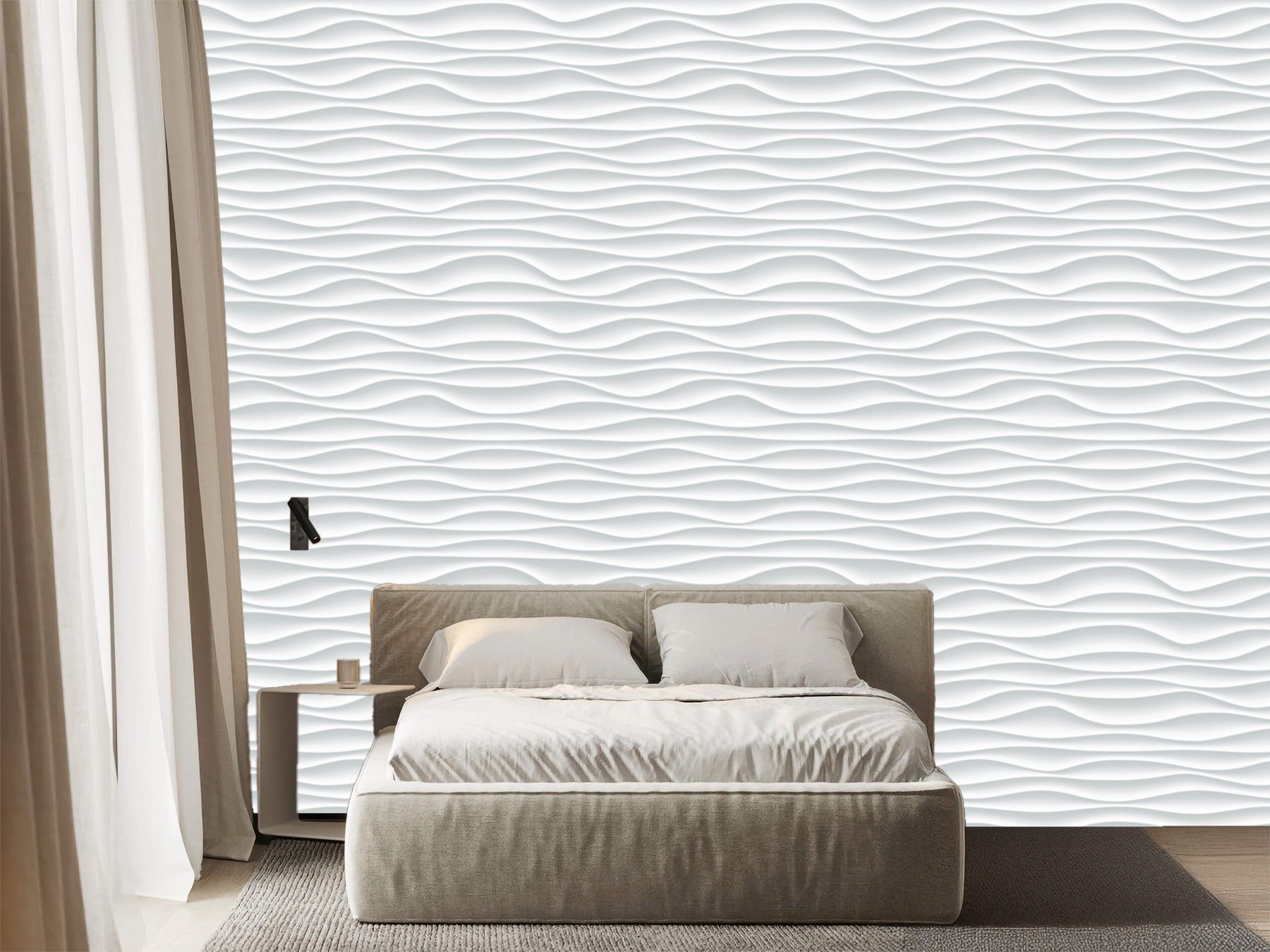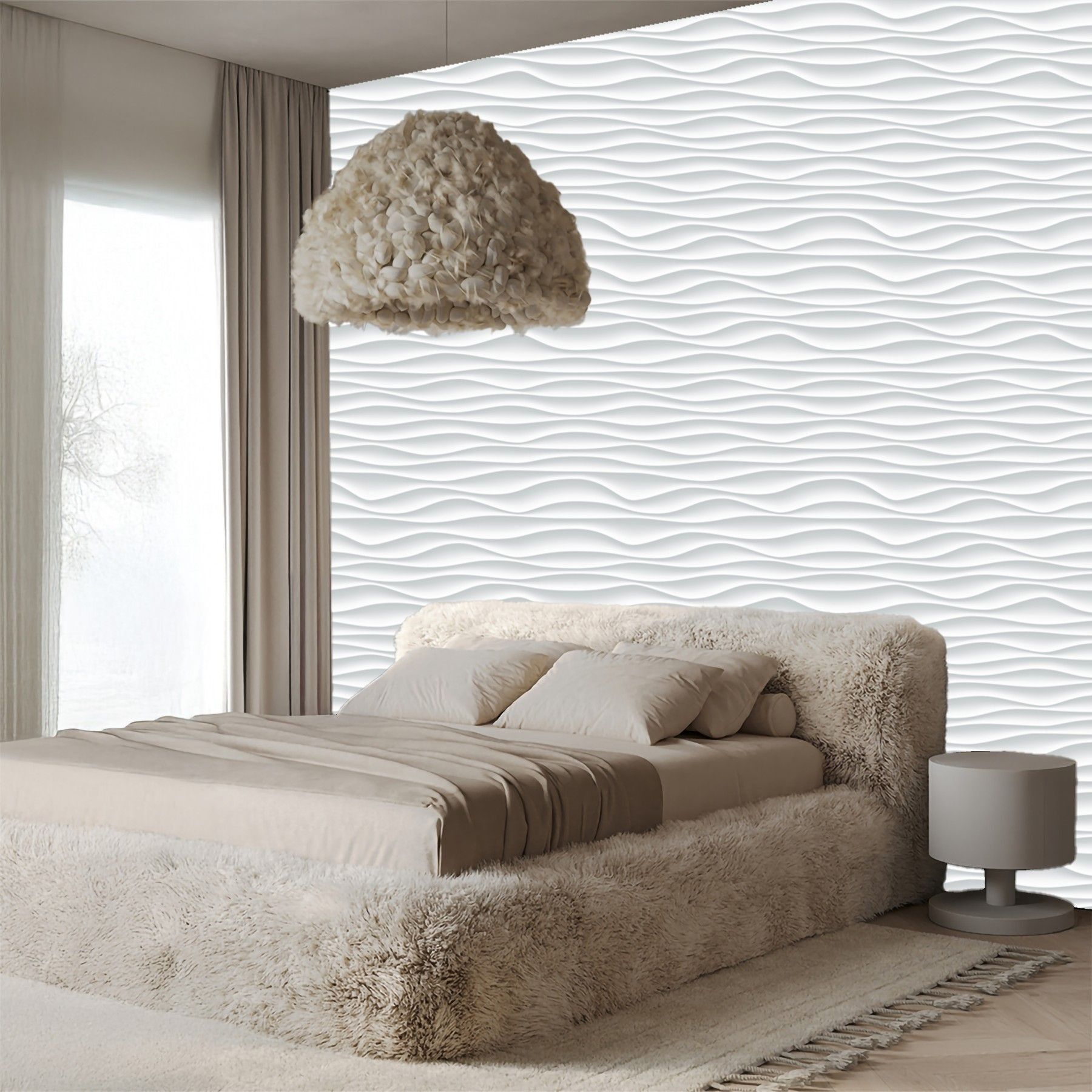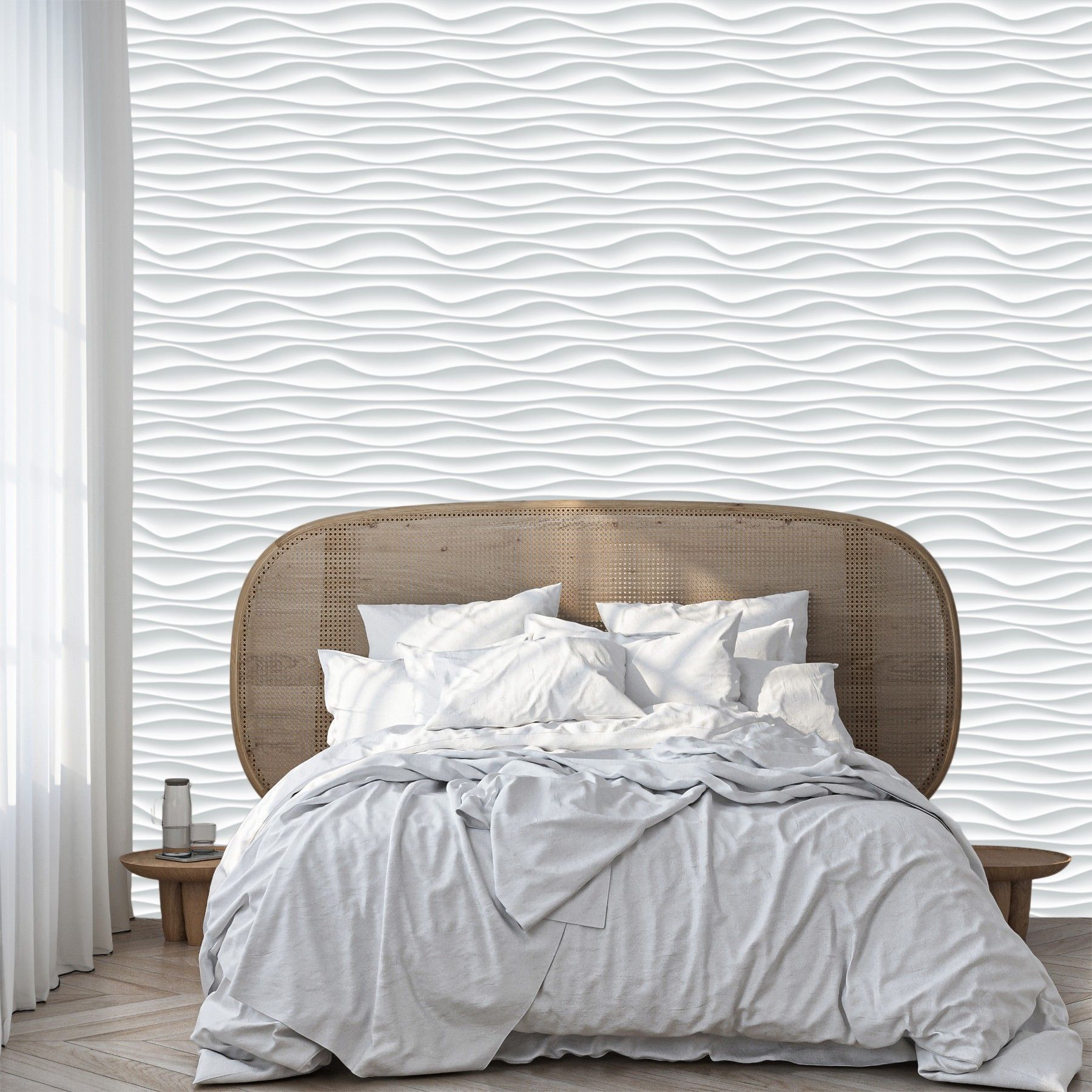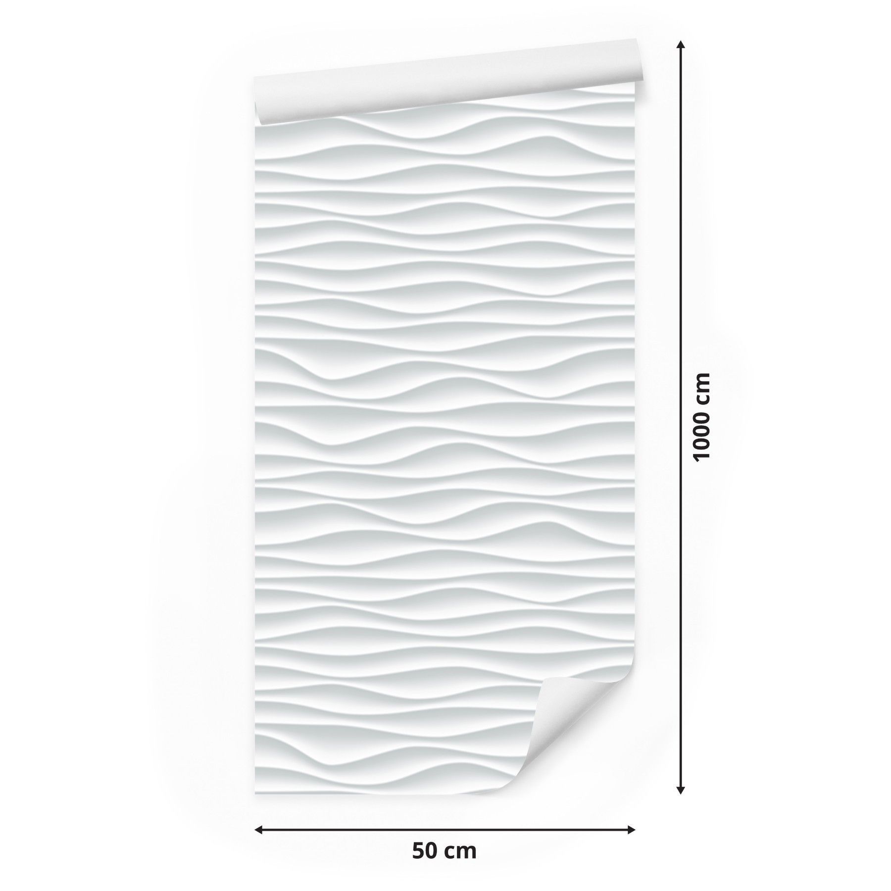 10m VLIES TAPETE Rolle Weiße WELLEN 3D Geometrisches Muster 6396