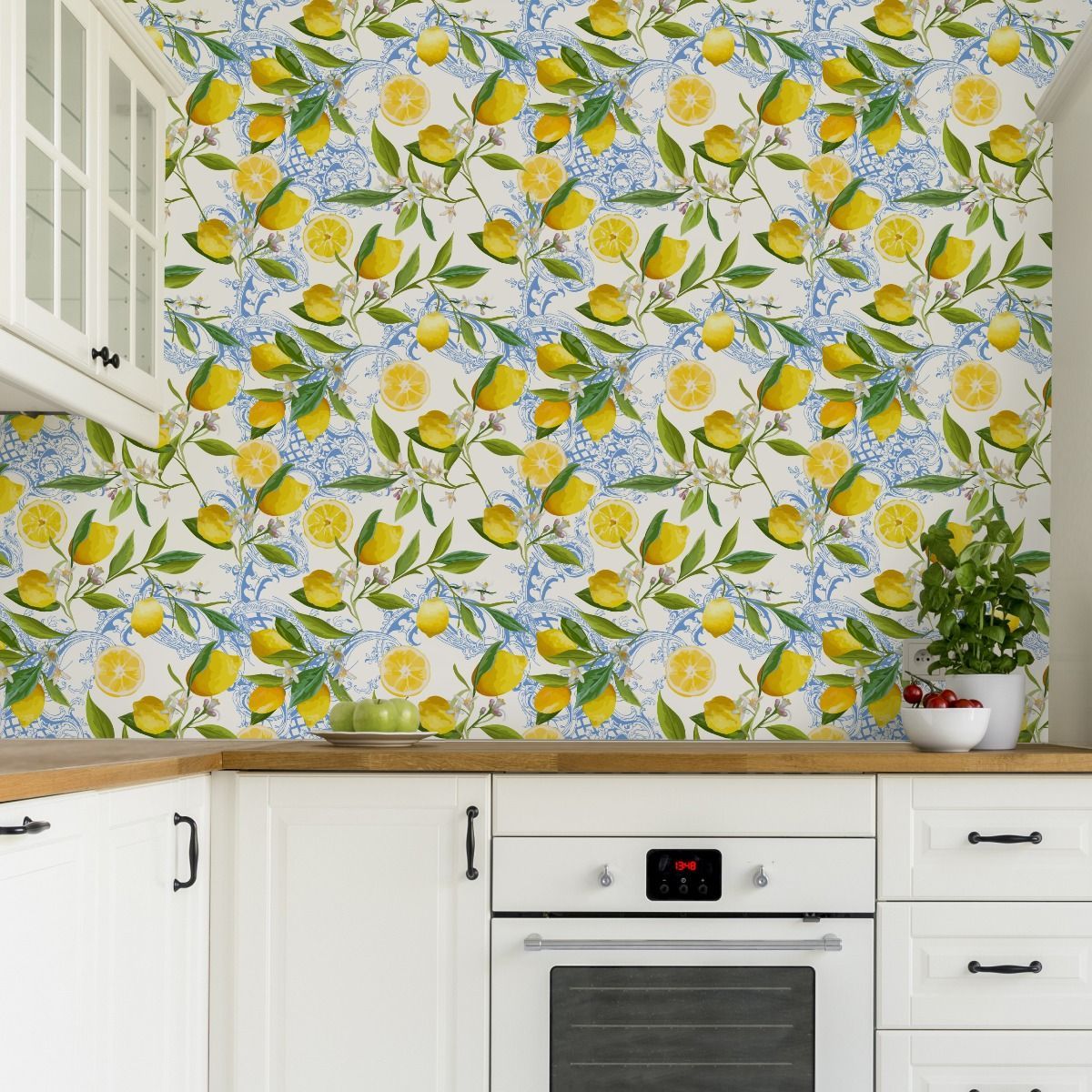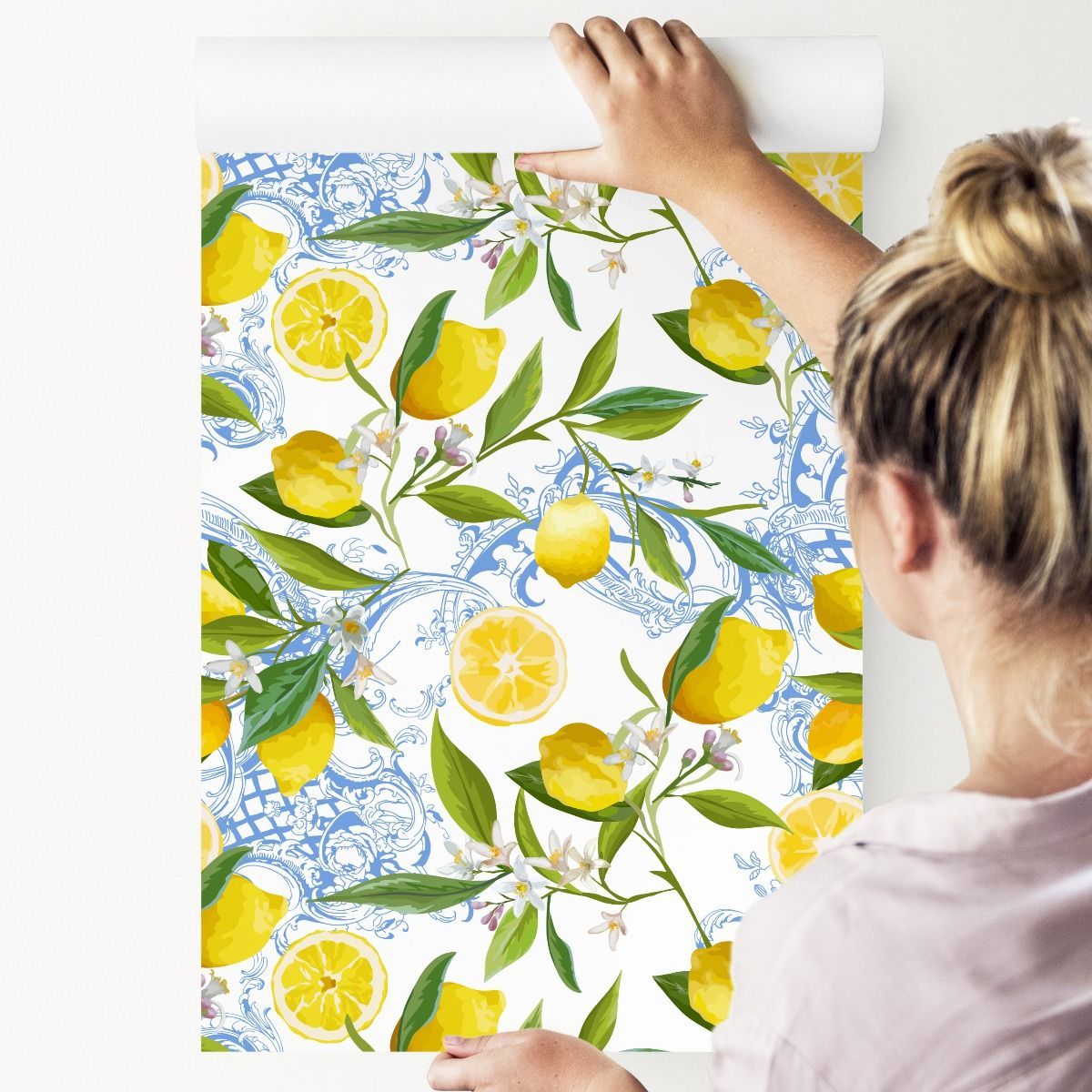 10m VLIES TAPETE Rolle Zitrone Blumen Aquarell 3D Dekor 6359