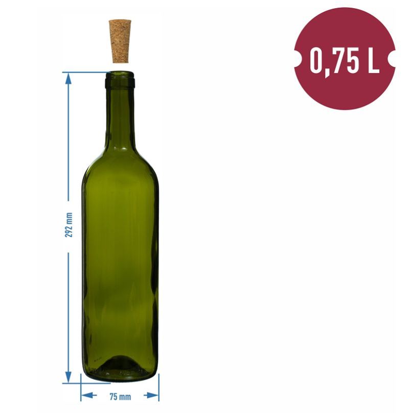 10Stk Weinflasche 750ml Glasflasche leere Flasche Likör Wein Olivgrün mit KORKEN