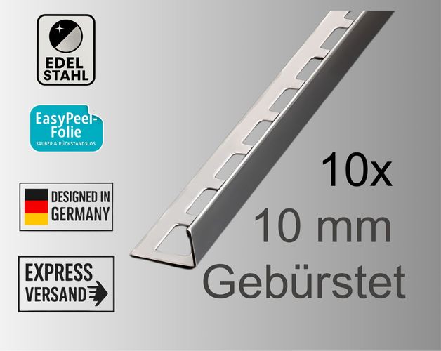 10x Fliesenprofil 10 mm Edelstahl gebürstet – 250 cm – Hochwertiger Kantenschutz für Fliesen Produktbeschreibung: Verleihen Sie Ihren Fliesen den perfekten Abschluss mit diesem hochwertigen Fliesenprofil aus Edelstahl (V2A) in gebürsteter Optik. Das Profil schützt die Fliesenkanten zuverlässig vor B