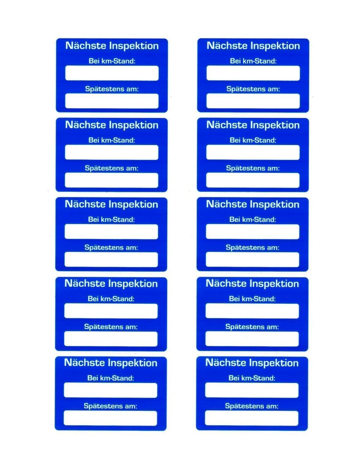 10x Aufkleber Nächste Inspektion BEI KM-STAND KLEBER Kundendienstaufkleber