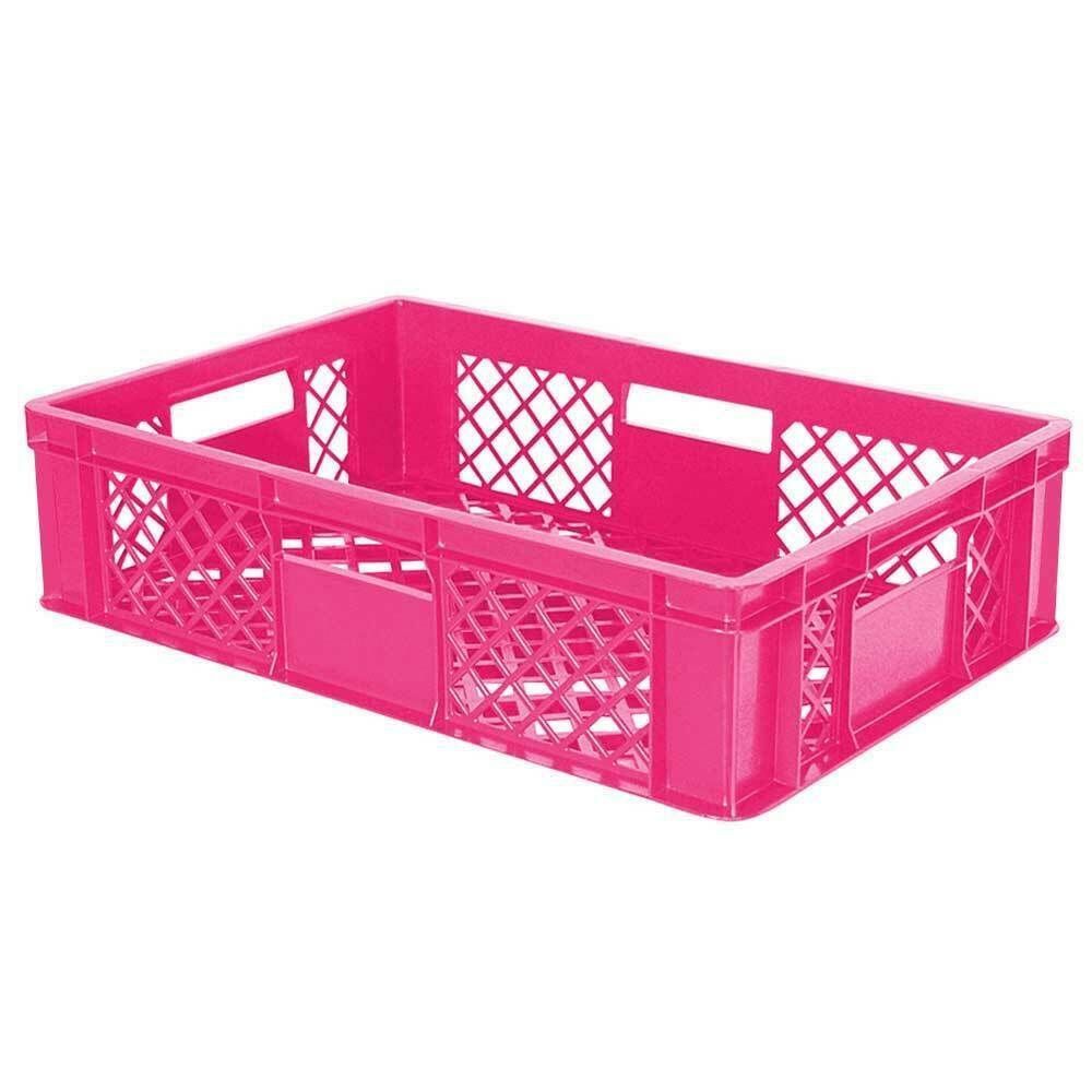 10x Bäckerkiste, 600x400x150 mm, lebensmittelecht, pink + Transportroller